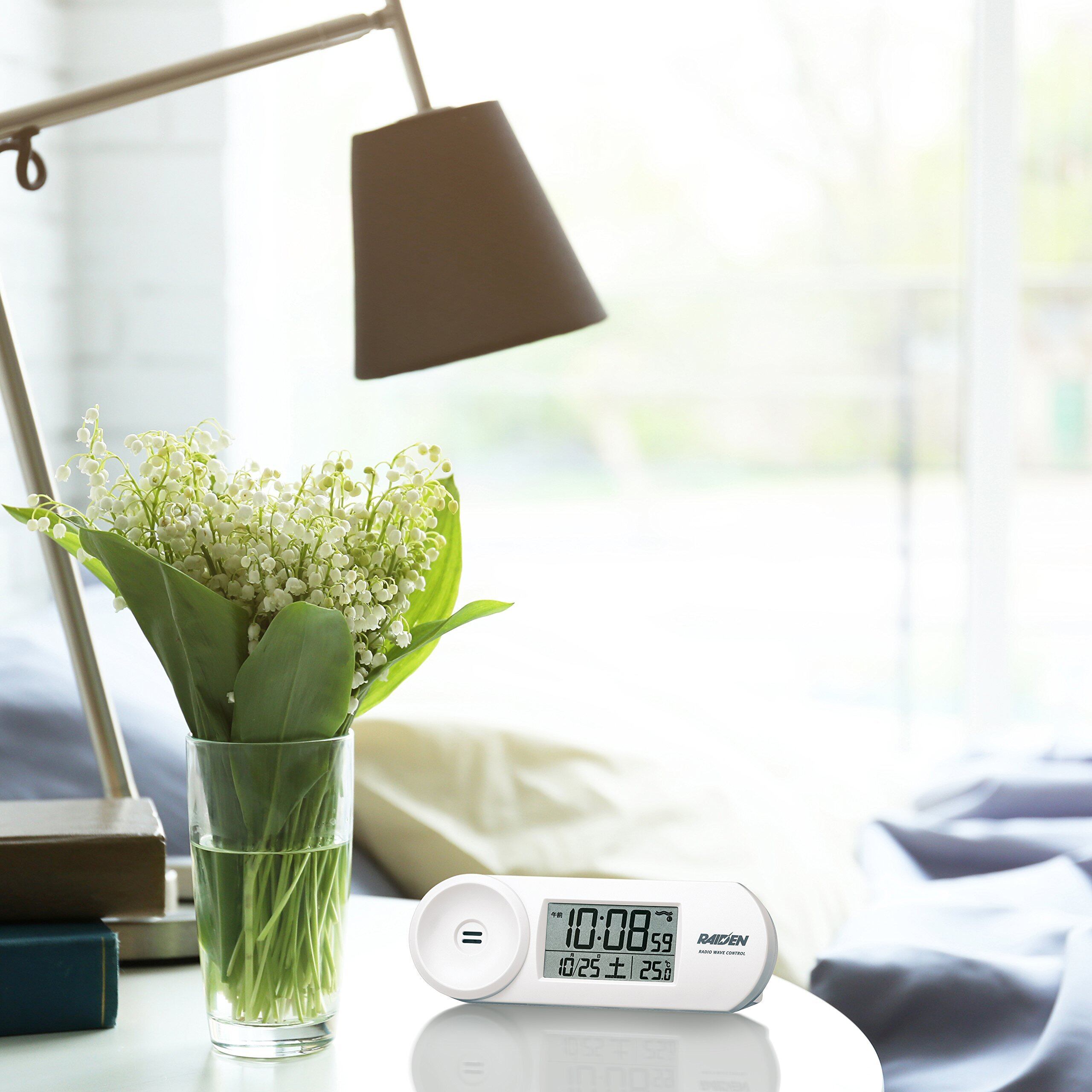 セイコークロック 置き時計 目覚まし時計 電波 デジタル 大音量 PYXIS ピクシス RAIDEN 白 本体サイズ:9.0×12.3×4.6cm BC407W