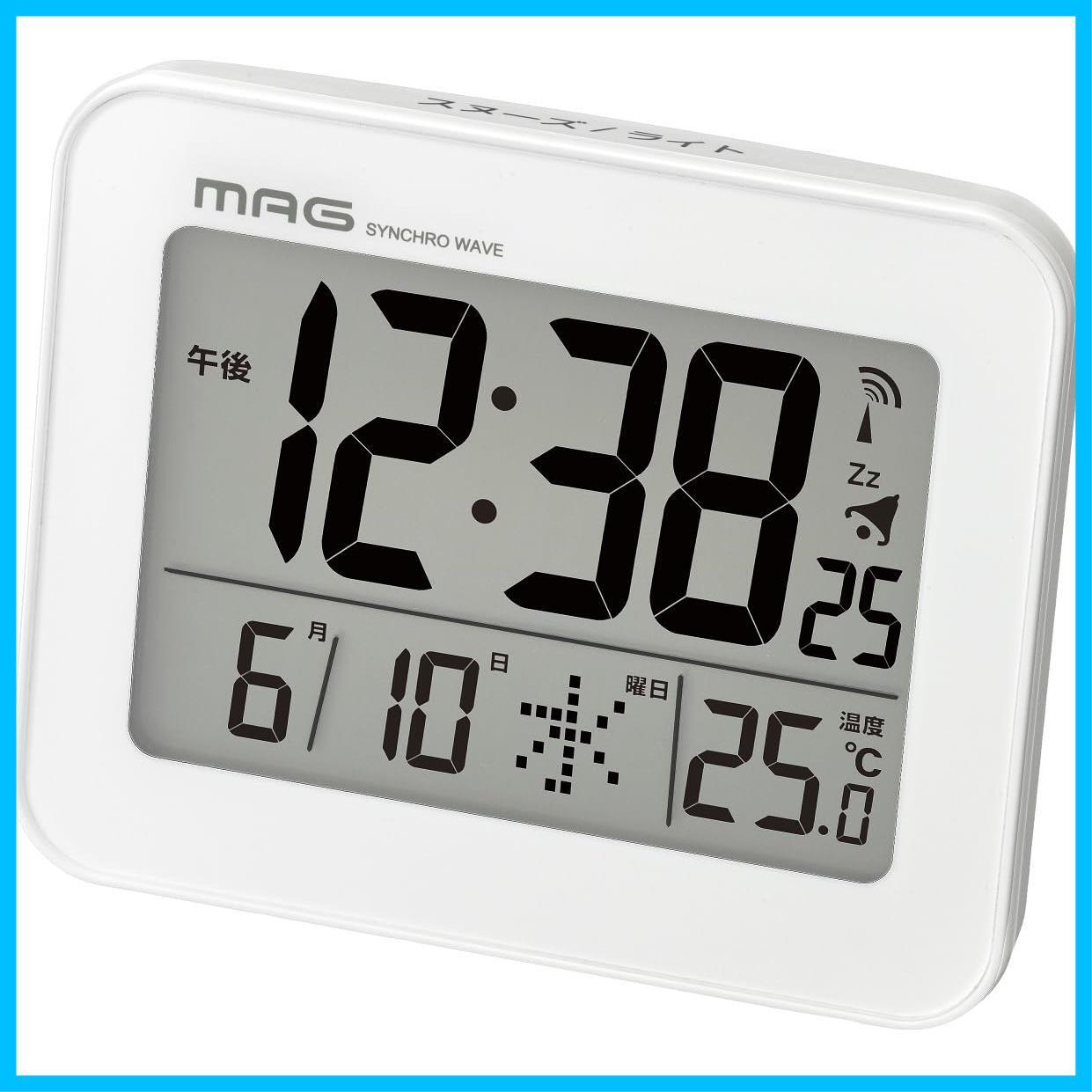 MAG(マグ) 目覚まし時計 置き時計 小型 小さい デジタル 電波時計 温度計 カレンダー 電子音 アラーム スヌーズ ライト ホワイト ファルマン T-776 WH-Z ノア精密