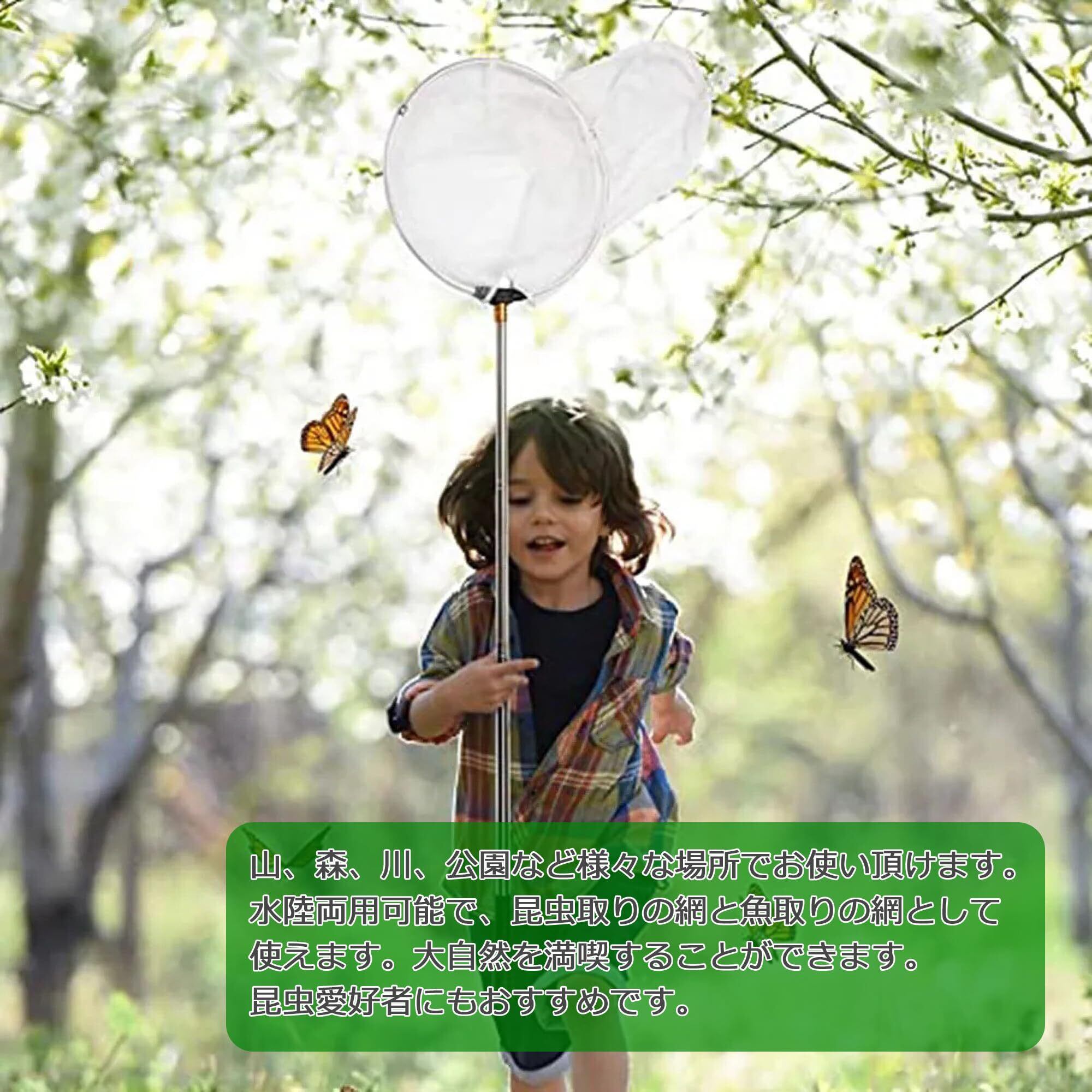 山、森、川、公園など様々な場所でお使い頂けます。水陸両用可能で、昆虫取りの網と魚取りの網として使えます。大自然を満喫することができます。昆虫愛好者にもおすすめです。