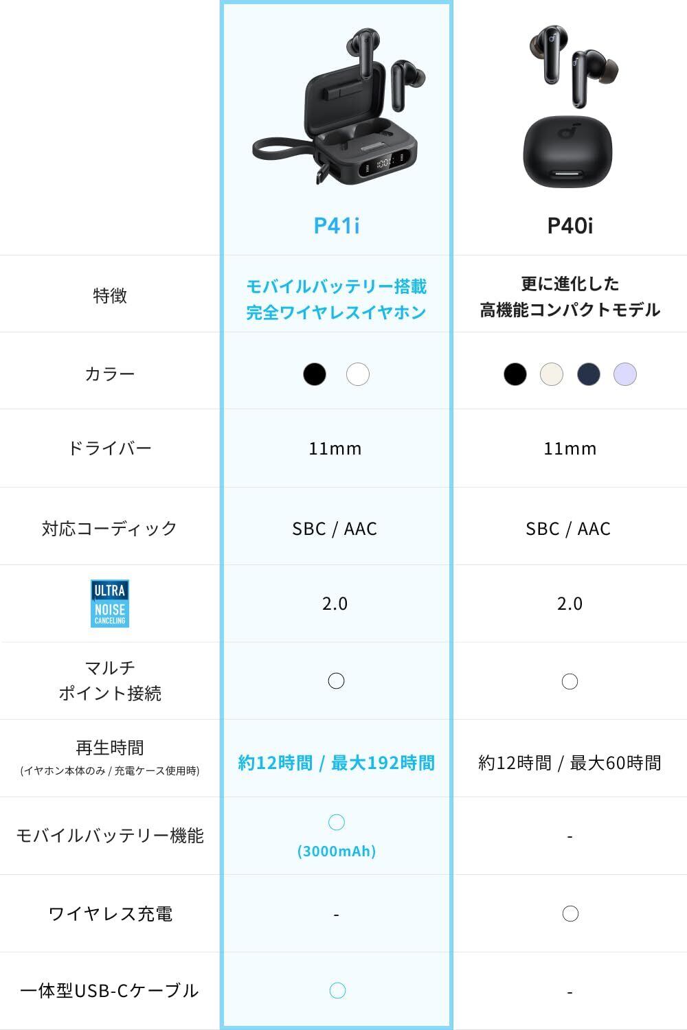 Anker Soundcore P41i (Bluetooth 5.3) 【モバイルバッテリー搭載完全ワイヤレスイヤホン/ウルトラノイズキャンセリング 2.0 / マルチポイント接続 / 最大192時間再生 / PSE技術基準適合】ブラック | Lulu