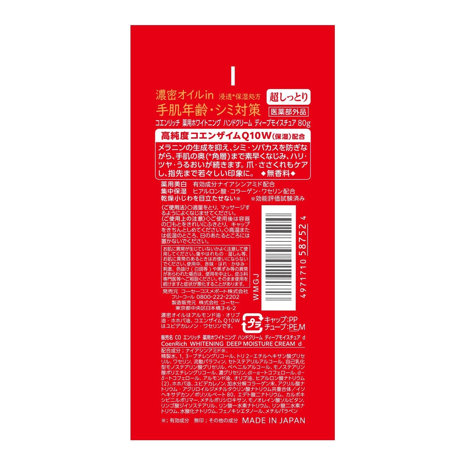 【医薬部外品】 コエンリッチ 薬用ホワイトニング ハンドクリーム ディープモイスチュア 超しっとり ヒビ あかぎれ Q10 手荒れ べたつかない 80g