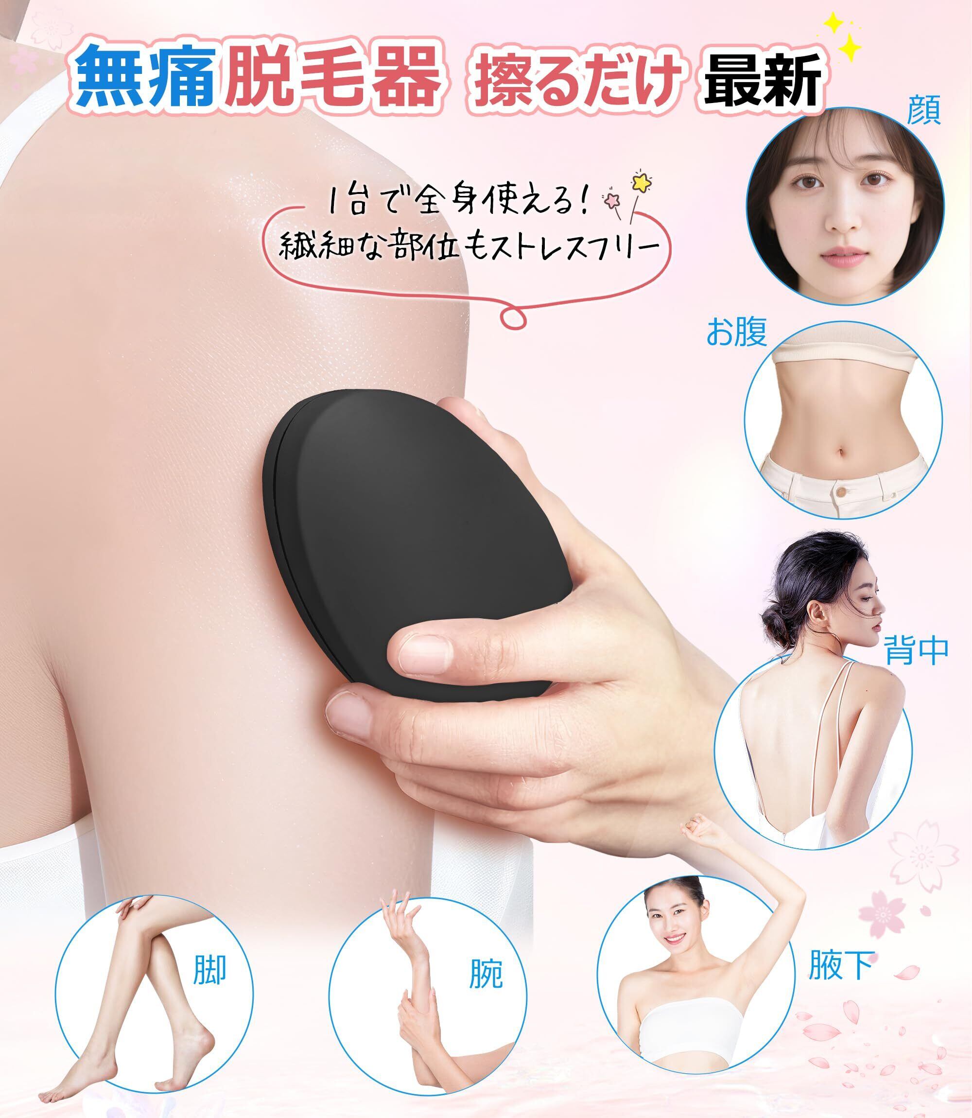 【完全無痛の脱毛器】ナノ技術で"擦るだけ"完了。「ナノガラスが肌をなでるように毛根をキャッチ!化学物質ゼロの究極肌優仕様。サロン並みの滑らか肌が、円を描くだけの簡単動作で自宅実現。※ワックス/カミソリ歴で黒ずんだ敏感肌の方から『刺激ゼロ』と評価83%(自社調査)」