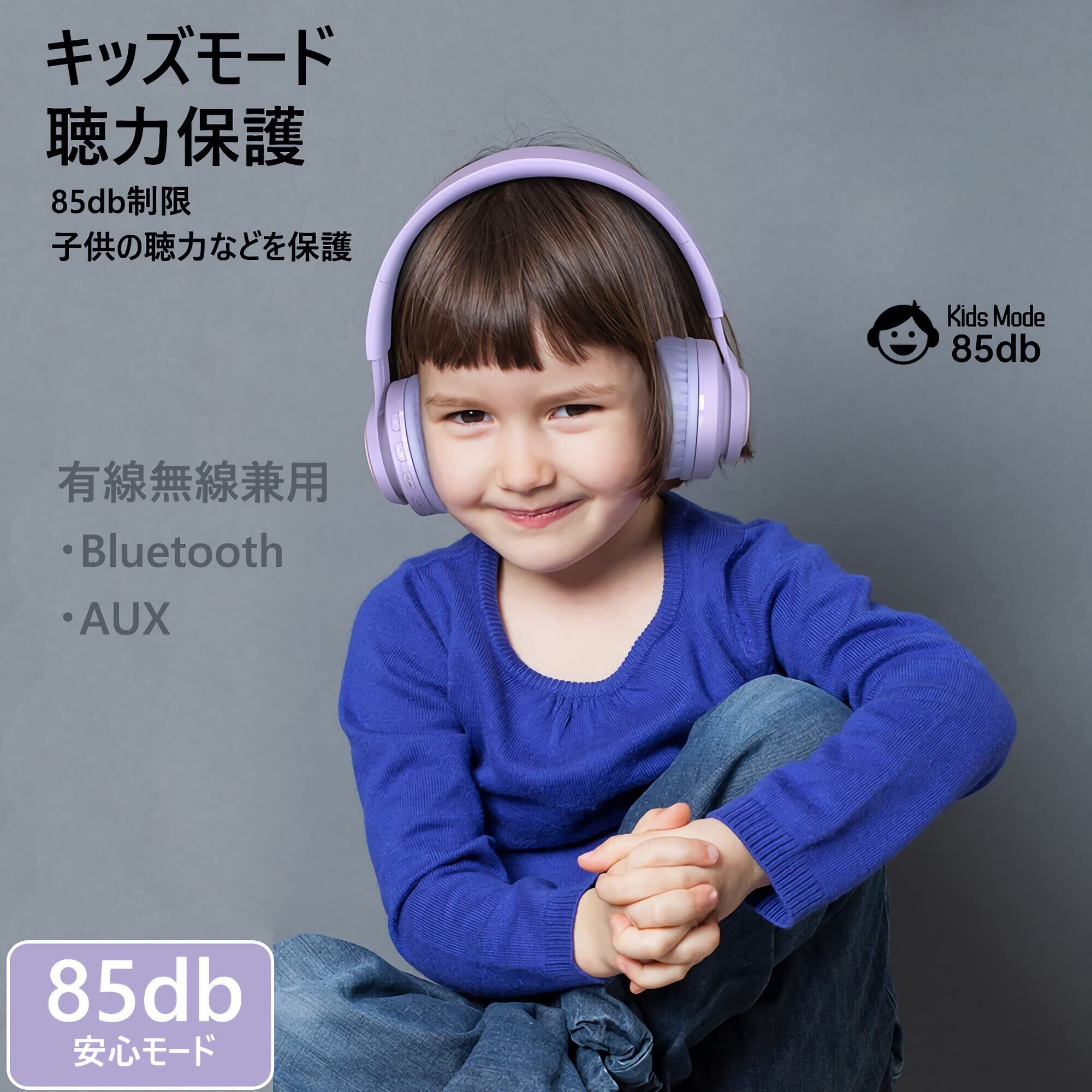 SITOAT 子供ヘッドホン Bluetoothヘッドホン 85db音量制限 聴覚保護 ワイヤレス ヘッドフォン マイク付き オンライン授業 音楽 会話 キッズモード 通常モード 無線有線両用 LED ライト 子供 成人 兼用 スマートホン ゲーム機 PCなど適用 (パープル) | Lulu