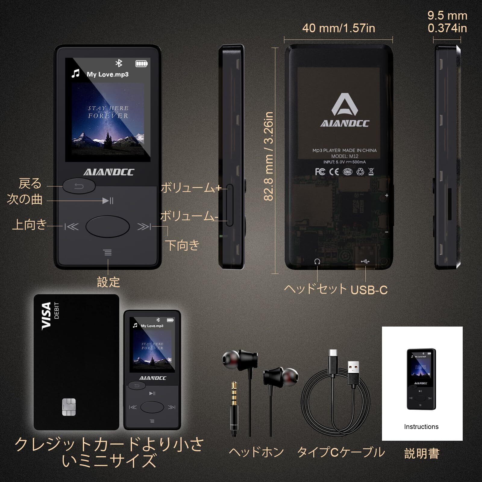 mp3プレーヤー bluetooth 5.3内蔵32GBメモリ、最大128GBまで拡張可能SDカード対応 音楽プレイヤーHiFi音質長時間再生 音楽プレーヤー有線・無線両対応 mp3プレーヤーコンパクトサイズFMラジオ搭載 音楽プレイヤー bluetooth対応有線イヤホン付属日本語説明書付き