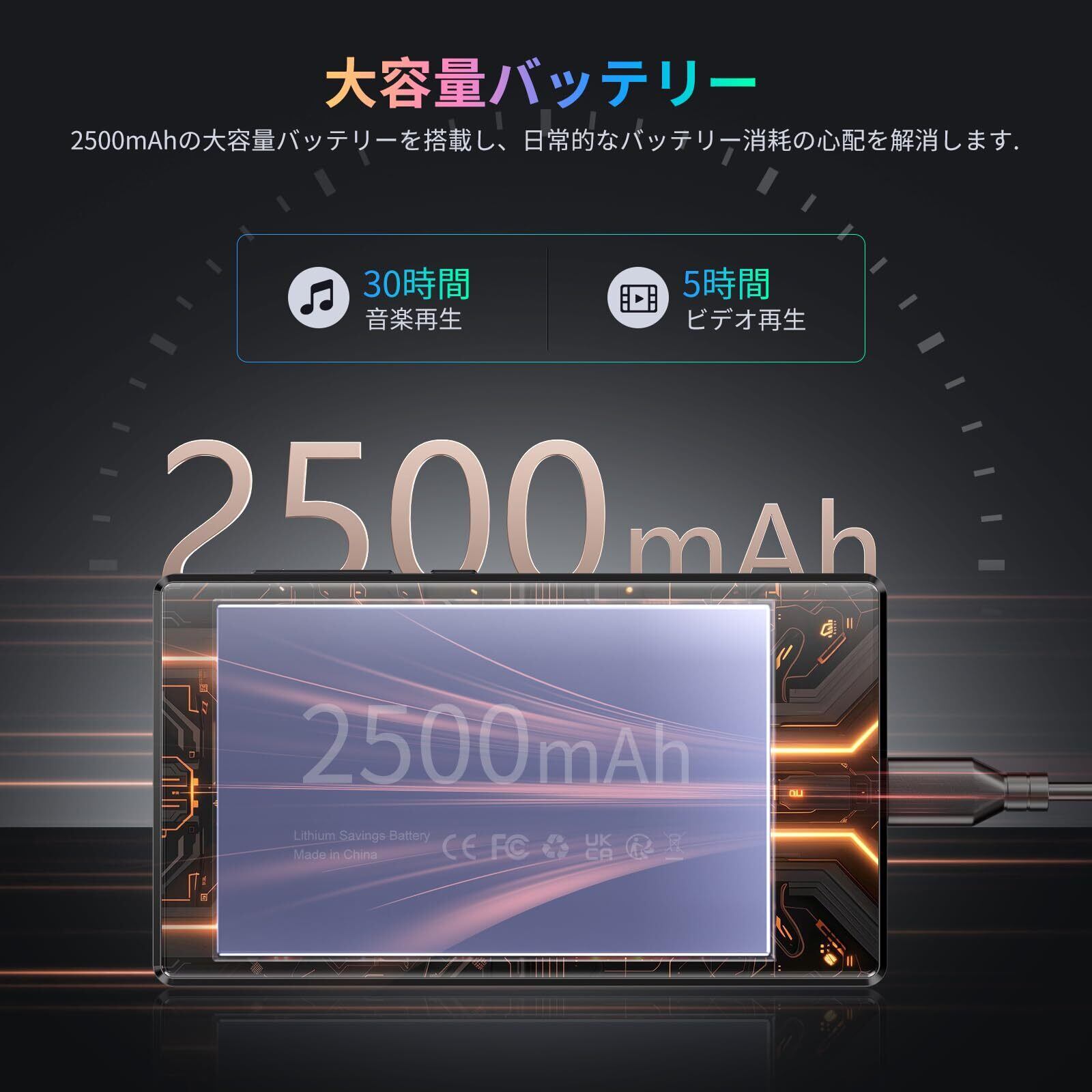 【2500mAh大容量バッテリー】低消費電力設計で、音楽連続再生50-60時間/動画7-9時間を実現。旅行・運動・運転・就寝時など、長時間音楽世界に没頭できます。