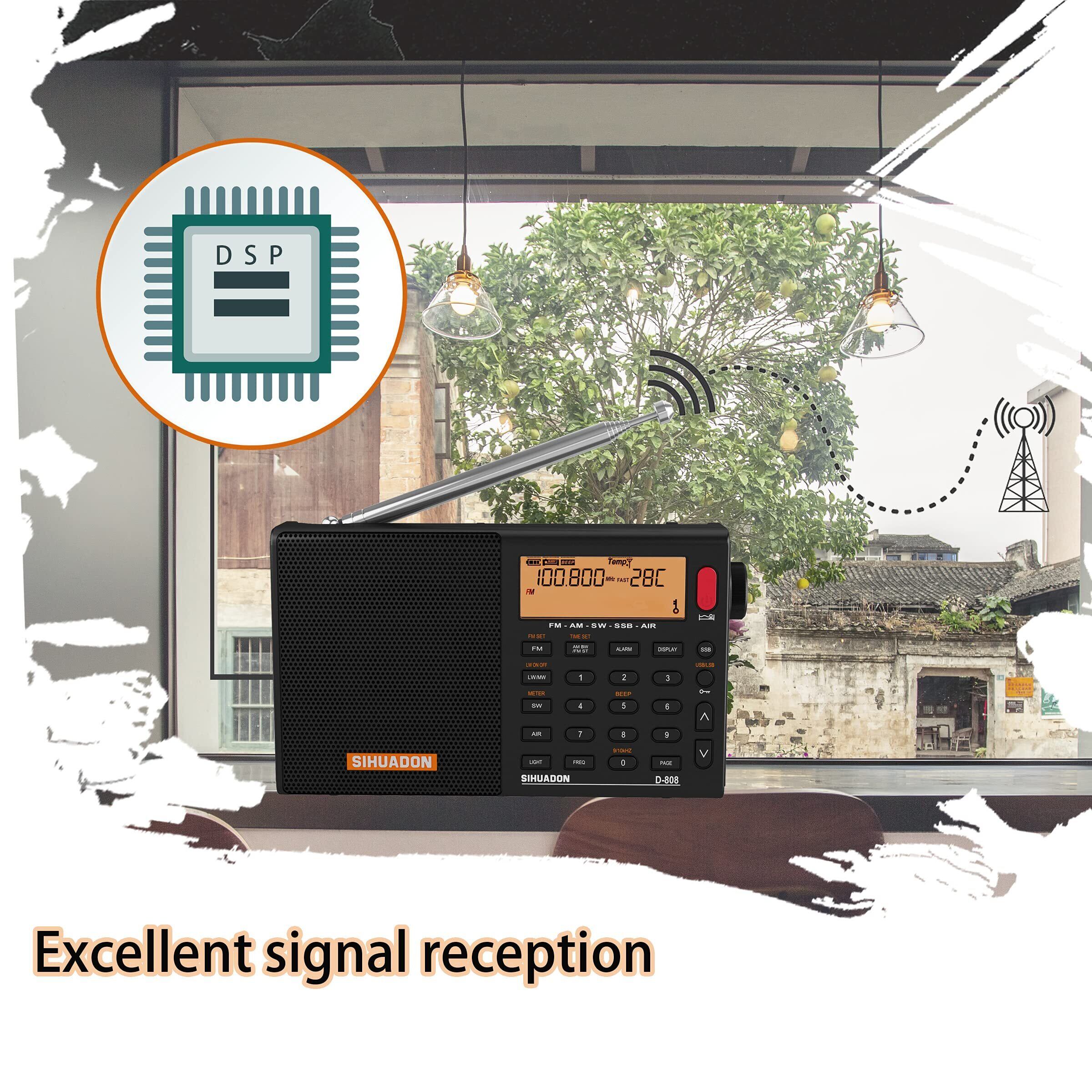 SIHUADON D-808 ポータブルラジオ FM/AM/SW/LW/エアバンド ポケットラジオ SSB/BCL/DSP/RDS 高感度 小型 超軽量 電池式 充電式 オートオフ機能付き 操作簡単 日本語説明書付き | Lulu