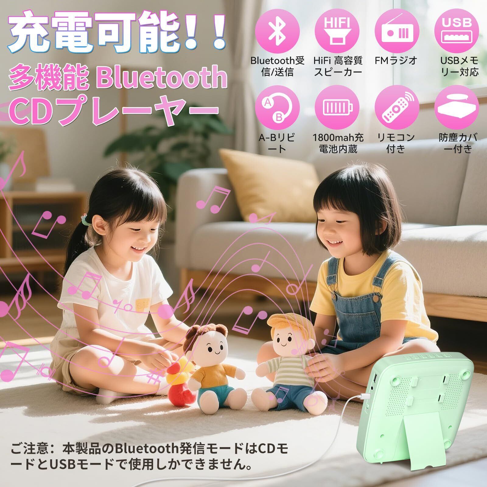 Gueray cdプレーヤー 卓上&壁掛け式 Bluetooth受信/送信 1800mah充電池内蔵 HiFiスピーカー内蔵 CDプレイヤー 多機能 FM/USBなどに対応 操作簡単 リピート/A-Bリピート再生 mp3対応 イヤホン対応 CDラジカセ 防塵カバー搭載 リモコン付き 音楽再生/語学学習/胎児教育 日本語説明書付き グリーン