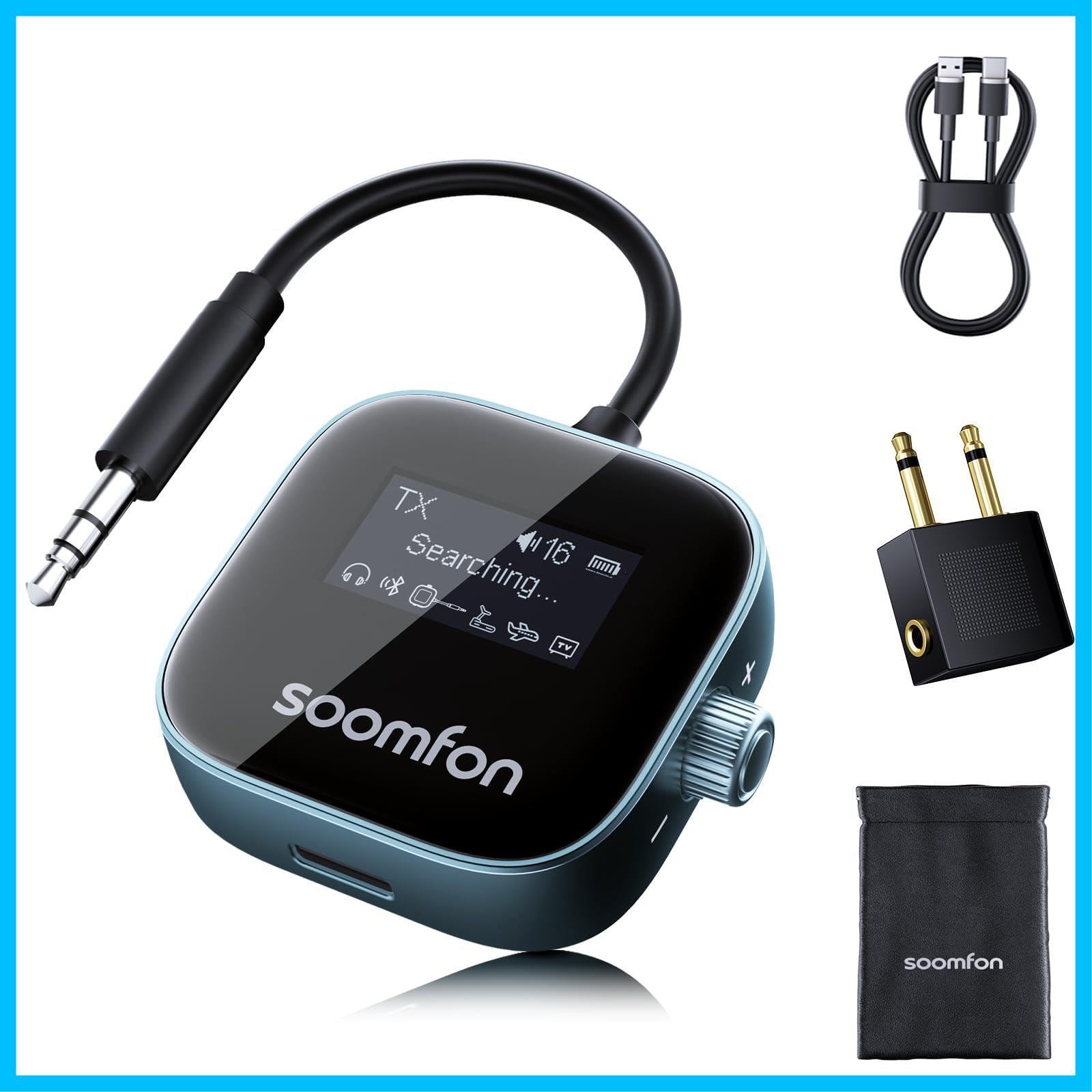 SOOMFON トランスミッター& レシーバー、Bluetooth5.3、LCD スクリーン付き 2-in-1 ワイヤレス 飛行機/車載/テレビ/ホーム 送信機&受信機 Airpods/ヘッドフォン用 デュアルペア、 Bluetooth 3.5mmAux オーディオトランスミッター/レシーバー SBC/AAC対応 フライト、テレビ、カーステレオ、トレッドミル用『TELEC認証済み』