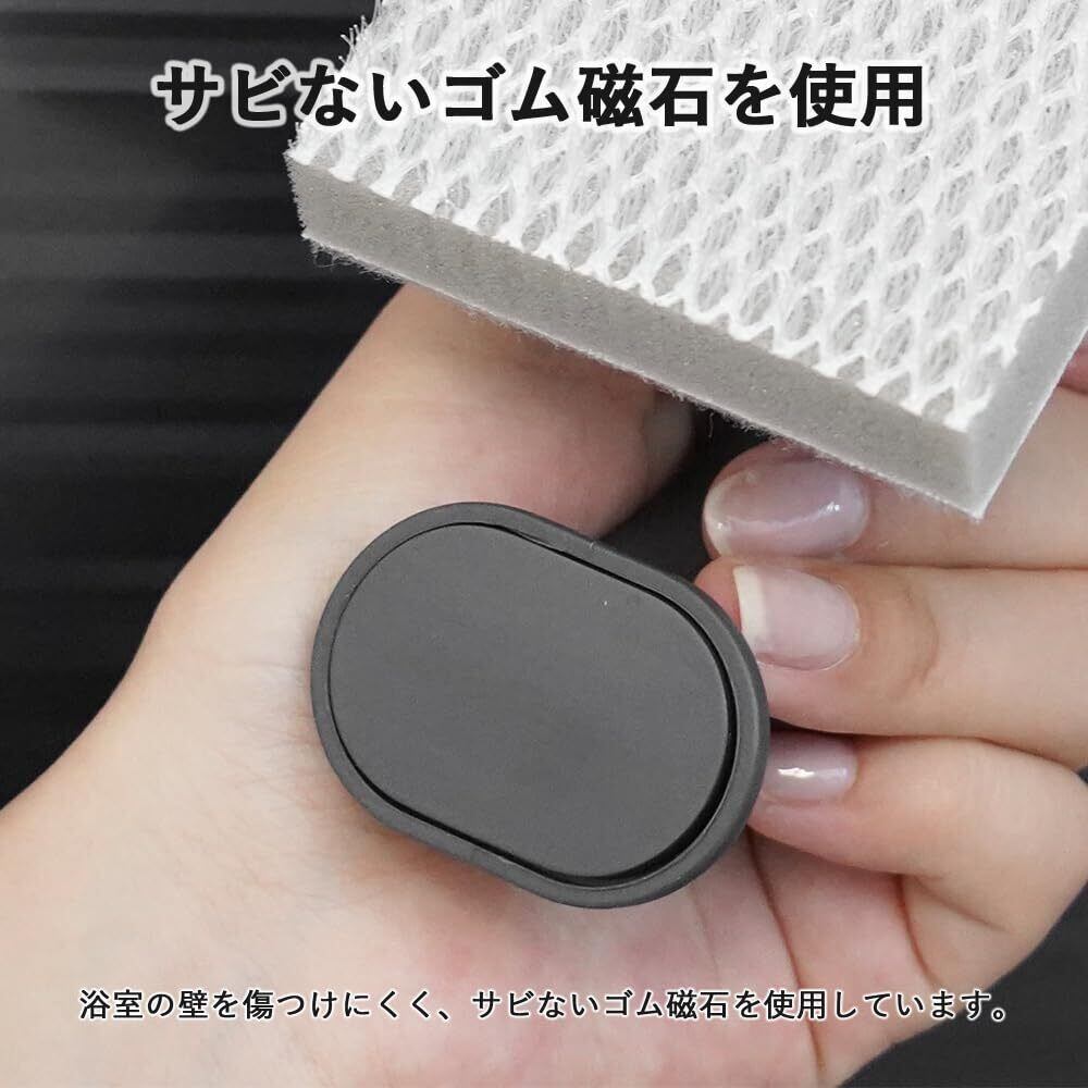 【壁や洗濯機にピタッ。】ブラシが凹凸床のピンク汚れをかき出します。おそうじ後は浴室の壁に磁石でピタッと貼り付くので、場所を選ばず衛生的に収納できます。※鋼板を使用していない壁、タイルなど磁石がつかない浴室の壁面には貼り付きません。