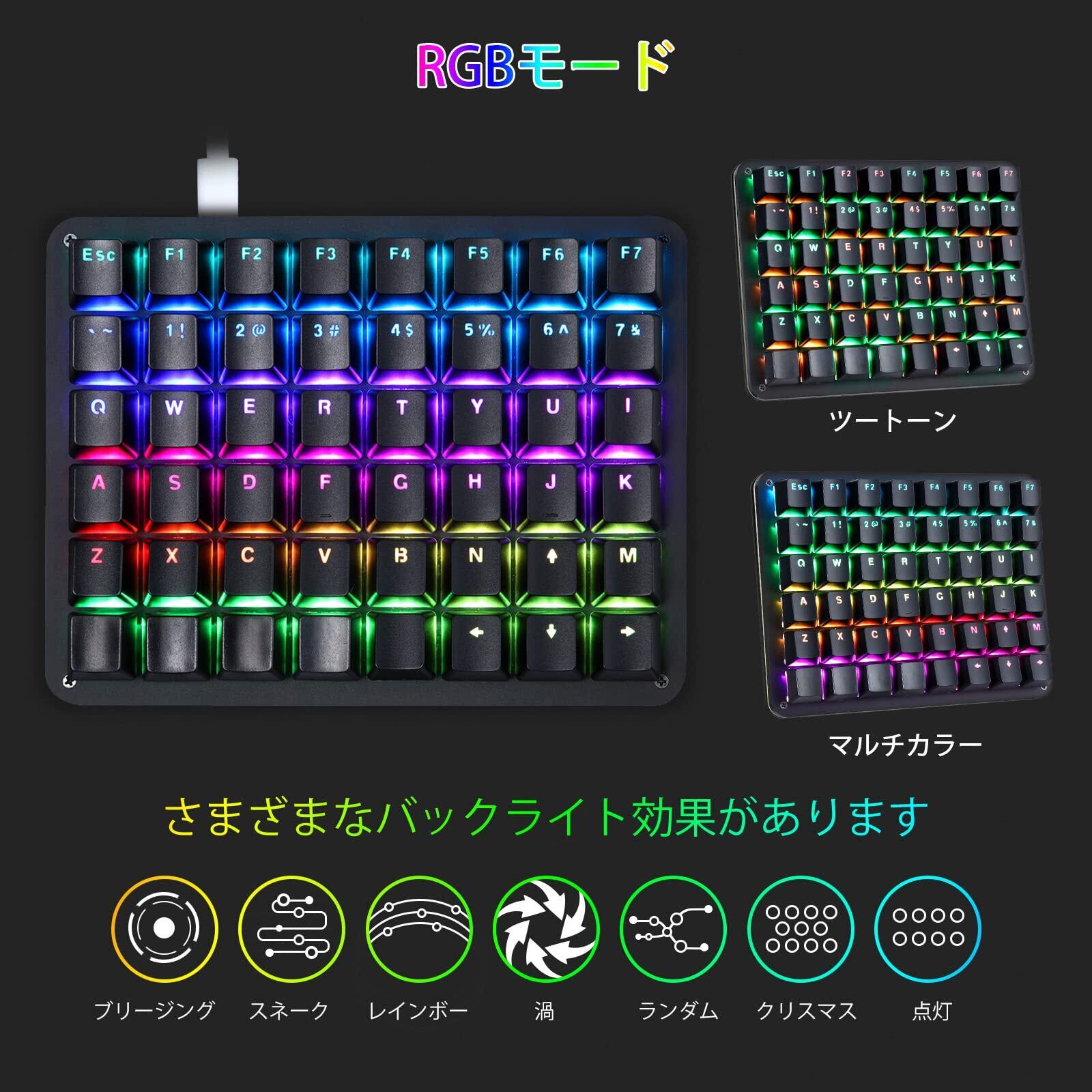 「プログラムできのカスタマイズキーボード」専用ソフトで全てのキーを自在にプログラムできます。環境に合わせて思いのままにカスタマイズにします。普通のキーボードにある129キー以外、レイヤーキー、35個ショートカットキー、バックライト調節キー、ボリューム調節/F13-F24/マウスコントロールのメデイアキー、マクロキーなどの色々なキーを設定できます。個人的のユニークな片手キーボードを構築できます