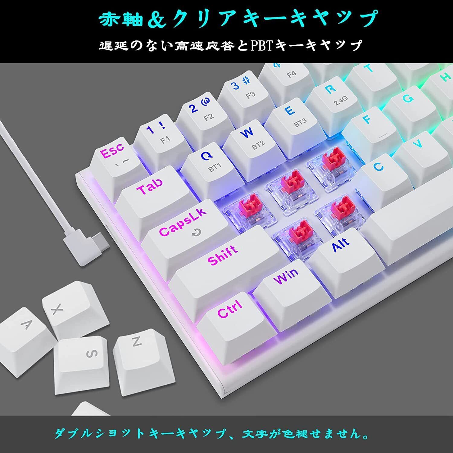 e元素ゲーミングキーボード63キー 赤軸を採用のメカニカルキーボード Bluetoothと2.4Gワイヤレス無線とUSB有線の3つモード接続 充電式 RGB発光LEDバックライト 60%小型コンパクト設計 Windows/Macに対応のゲーム/オフィス用キーボード (ホワイト・赤軸)