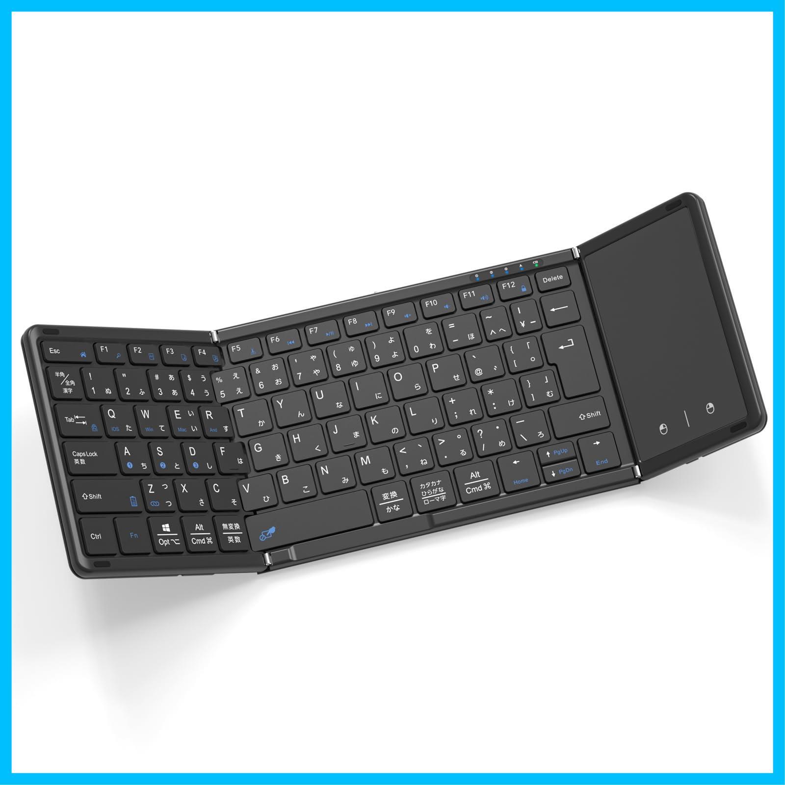 【最新型】Omikamo キーボード bluetooth 折り畳み式 ワイヤレス JIS標準日本語配列 ipad キーボード スマホ マルチペアリング タッチパッド付き iOS/Windows/Android/Mac/Google対応 無線 コンパクト 軽量 薄型 ipad mini パンタグラフ 充電式 (黒)