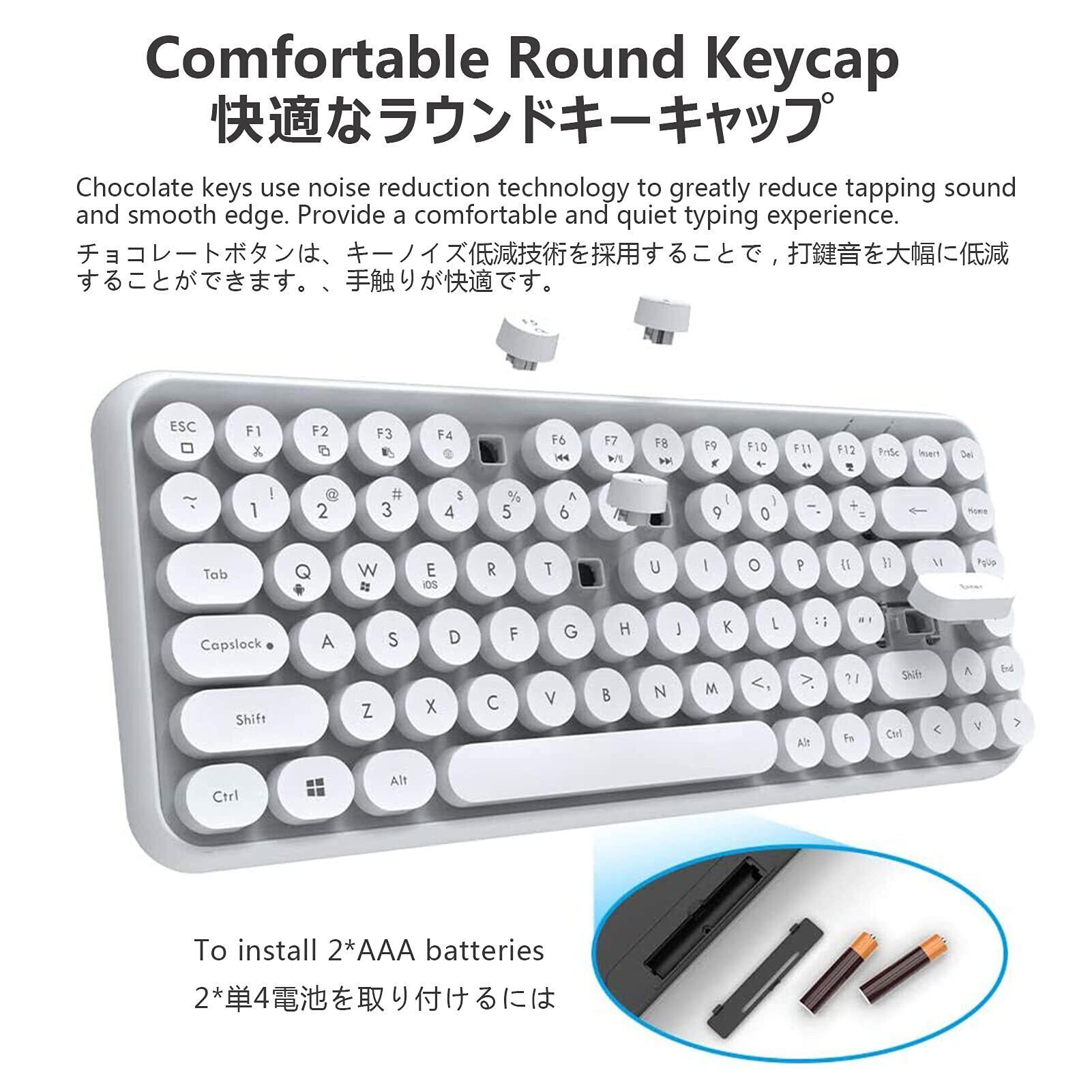 Ajazz 308i ブルートゥース タブレット用キーボード レディース ワイヤレス コンパクト Bluetooth キーボード かわいい タイプライター風 英語配列 (ホワイト)
