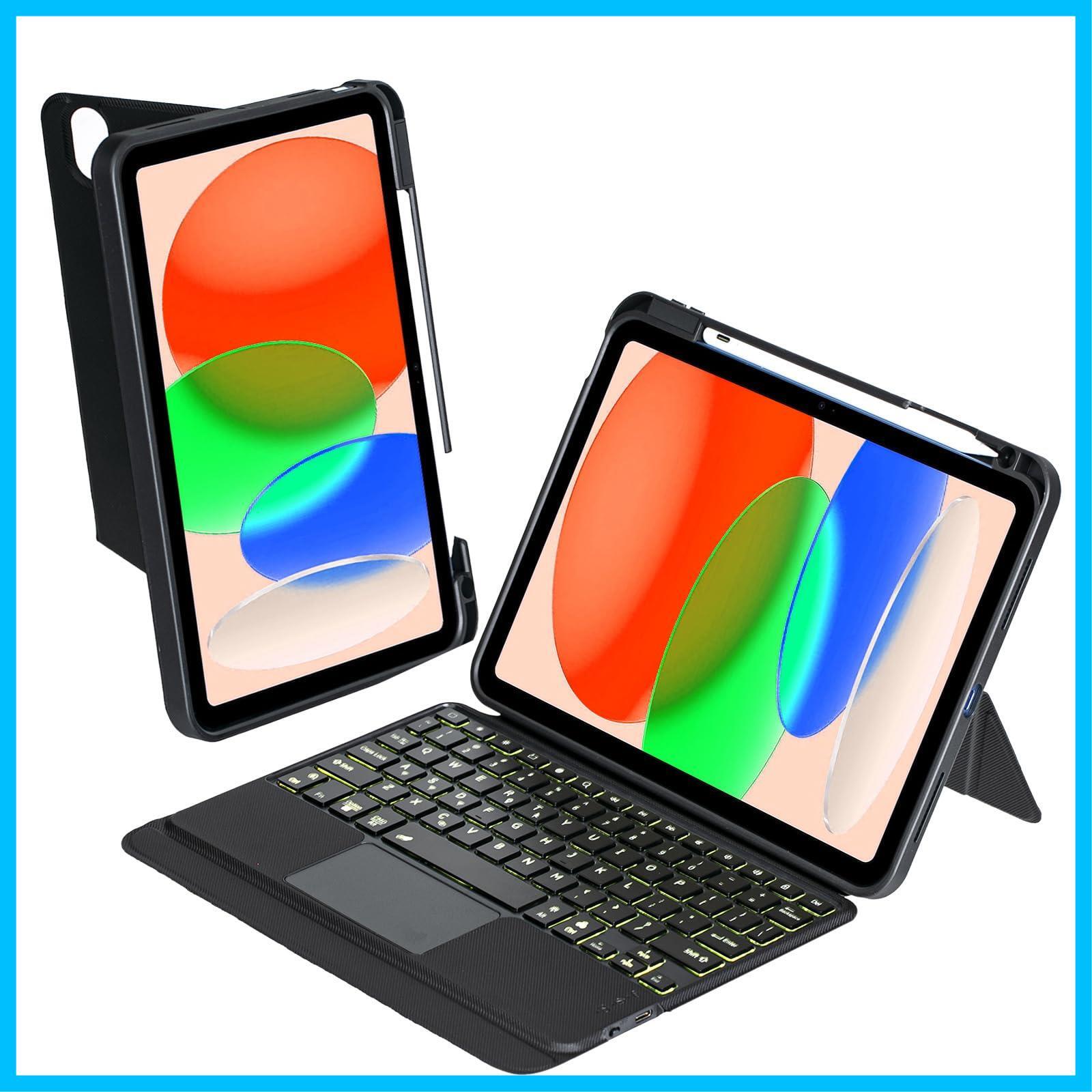 iPad A16 2025、第10世代 10.9インチ 2022 / 第11世代 11インチ 対応 キーボード付きケース 、トラックパッド付き、バックライト付き一体式&脱着式 iPad キーボード Bluetooth 平假名配列 英語配列 縦置き横置き可能 apple pencilの収納&充電対応 軽量多角度調整 一体型全面保護、日本語説明書付き, 磁気吸着