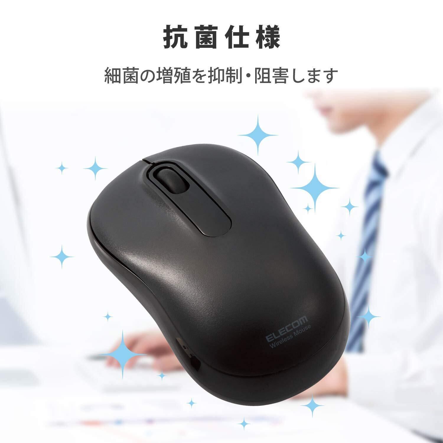 エレコム(ELECOM) ワイヤレスマウス M-DY11DRSKBK 静音 抗菌 3ボタン Mサイズ ブラック