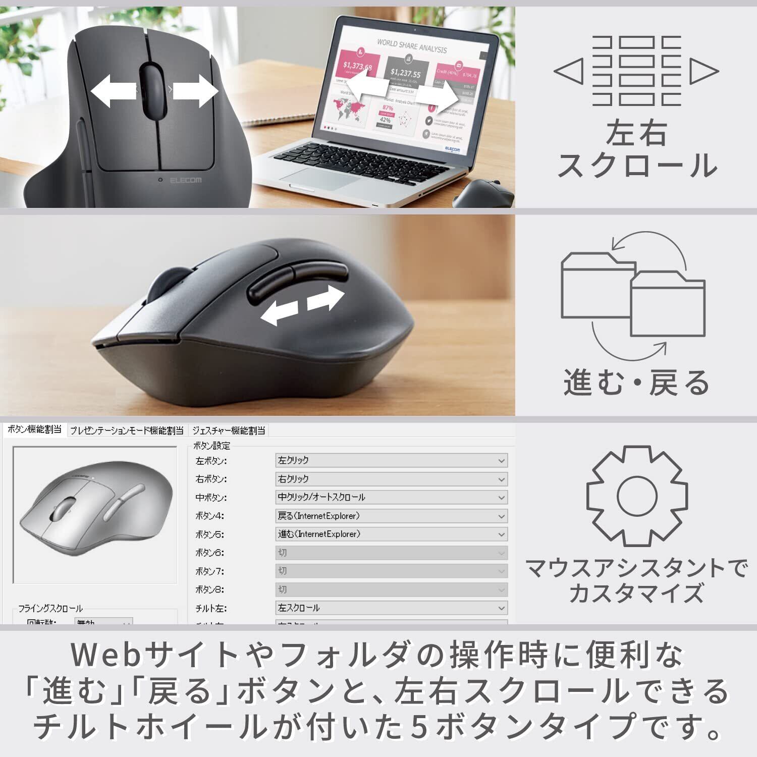 エレコム マウス ワイヤレスマウス SHELLPHA 無線2.4GHz 静音 抗菌 5ボタン+チルトホイール ブラック M-SH30DBSKBK