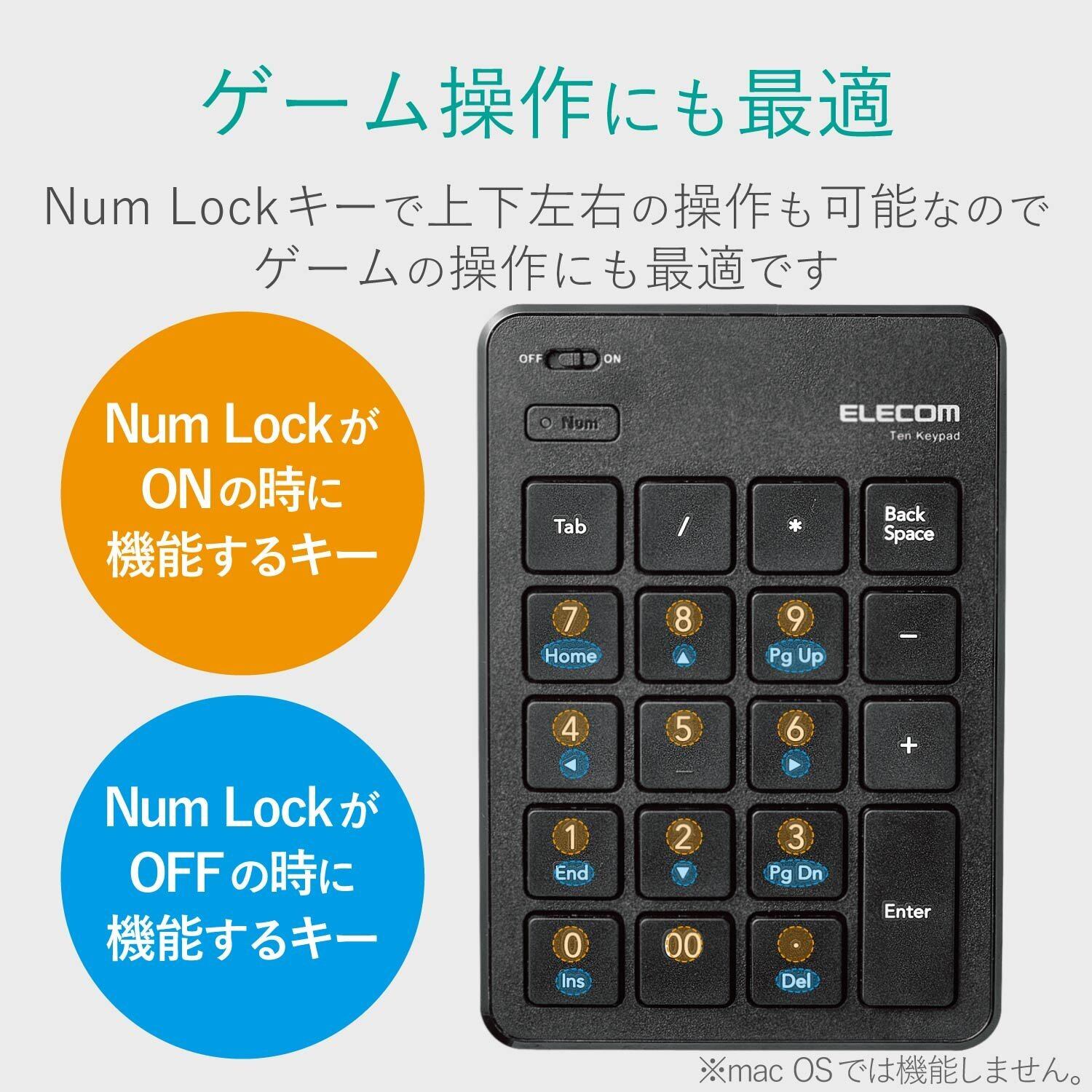 エレコム USB-A テンキー ワイヤレス(レシーバー付属) パンタグラフ 薄型 ブラック TK-TDP019BK