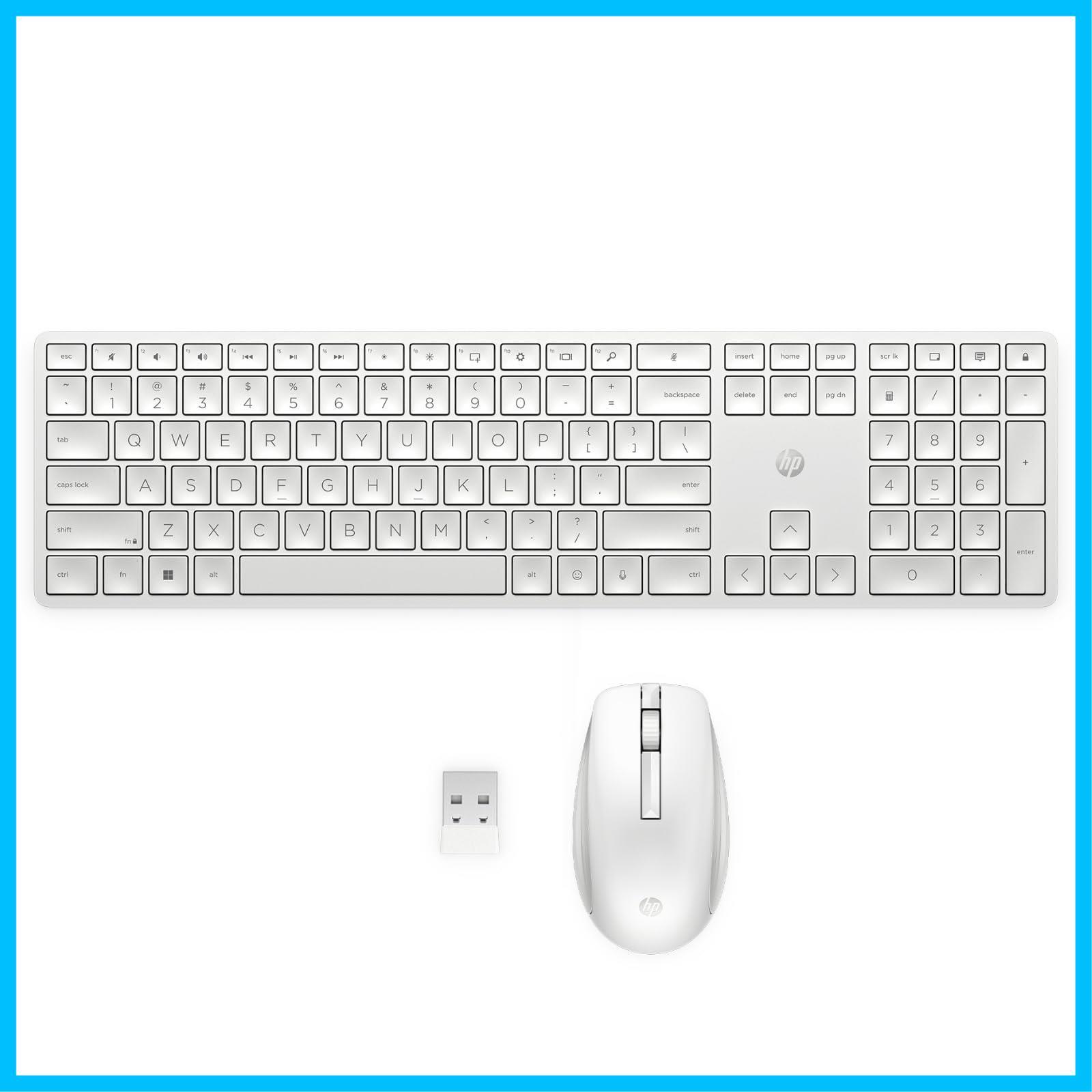 HP 650 ワイヤレス キーボード マウス セット ホワイト 日本語配列 USBドングル 2.4GHzワイヤレス接続 ガラステーブルでも操作可能なマウス カスタマイズ可能なキーボード