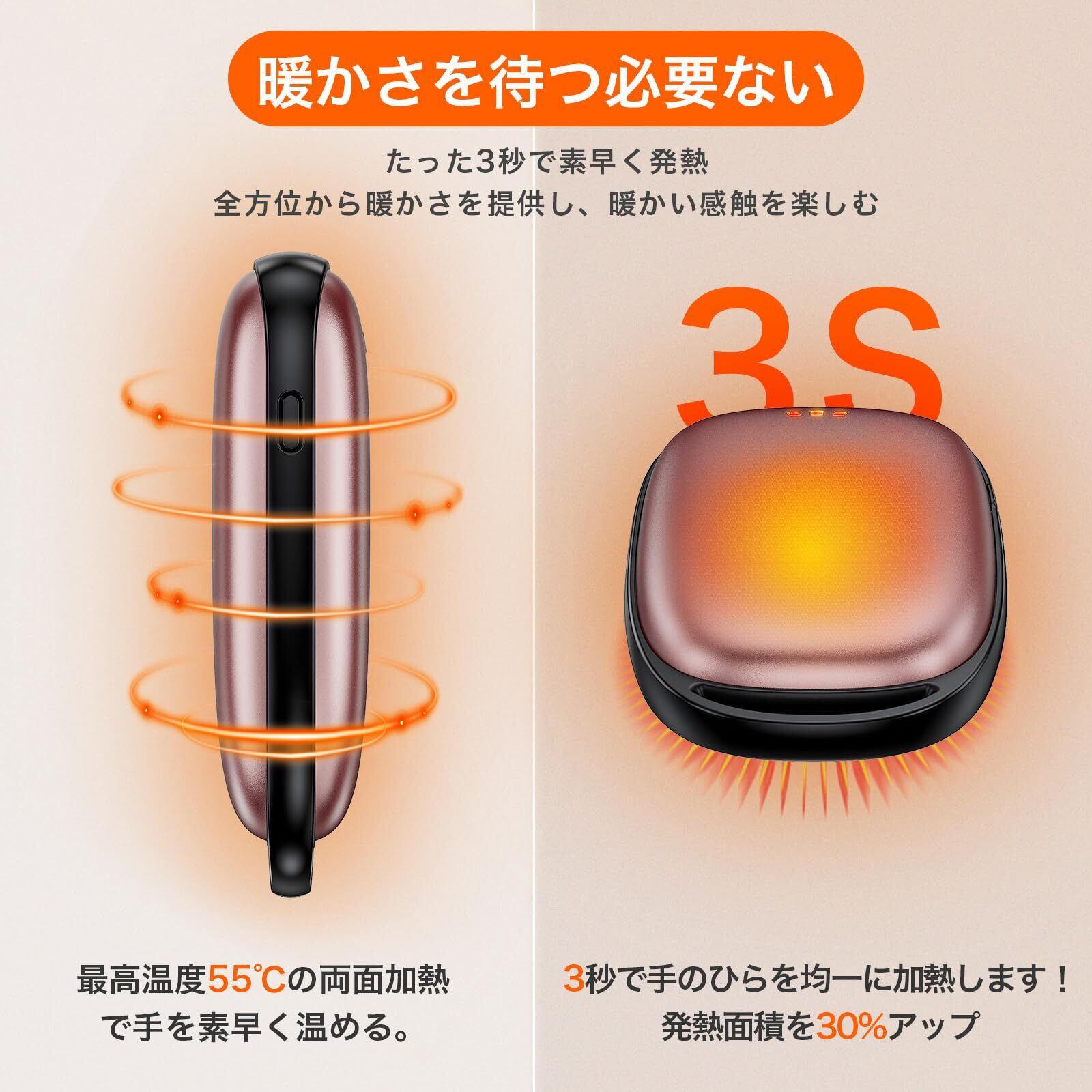 【両面急速発熱】 充電式カイロは全方位的な両面発熱機能が付きのため、3秒に急速発熱ができ、いつでもどこでも暖かさを楽しめます。また、スマートなコントロールチップが内蔵され、エネルギーを有効的に管理でき、約4-8時間の連続発熱が実現できます。
