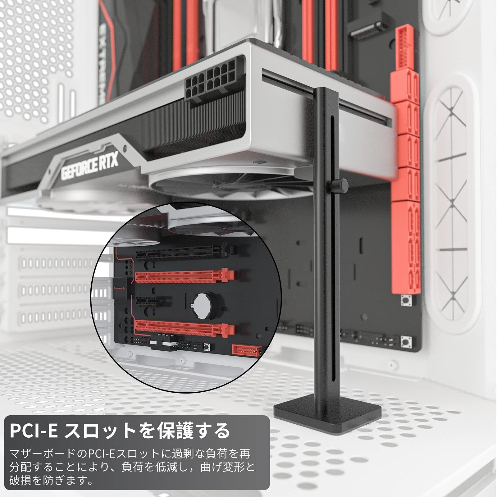 安定性抜群:重量級のグラボをしっかりと支えて、上下スライドスタンドで固定します。グラフィックボードの垂れ下がり防止の効果。支えは高さの位置調整できるのである程度融通が利くです、さまざまなビデオカードの重量とサイズに合わせて調整可能。