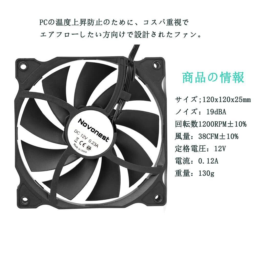 【高い風量PCファン】120*120*25mm標準のサイズ。ファンブレードのバックエンドにある独特の設計により、風量は進級して、ラジェーターの風道は、もっと科学的である。非常に効率的な換気(38 CFMで1200 RPM)を実現。エネルギー効率の良いケースファン。