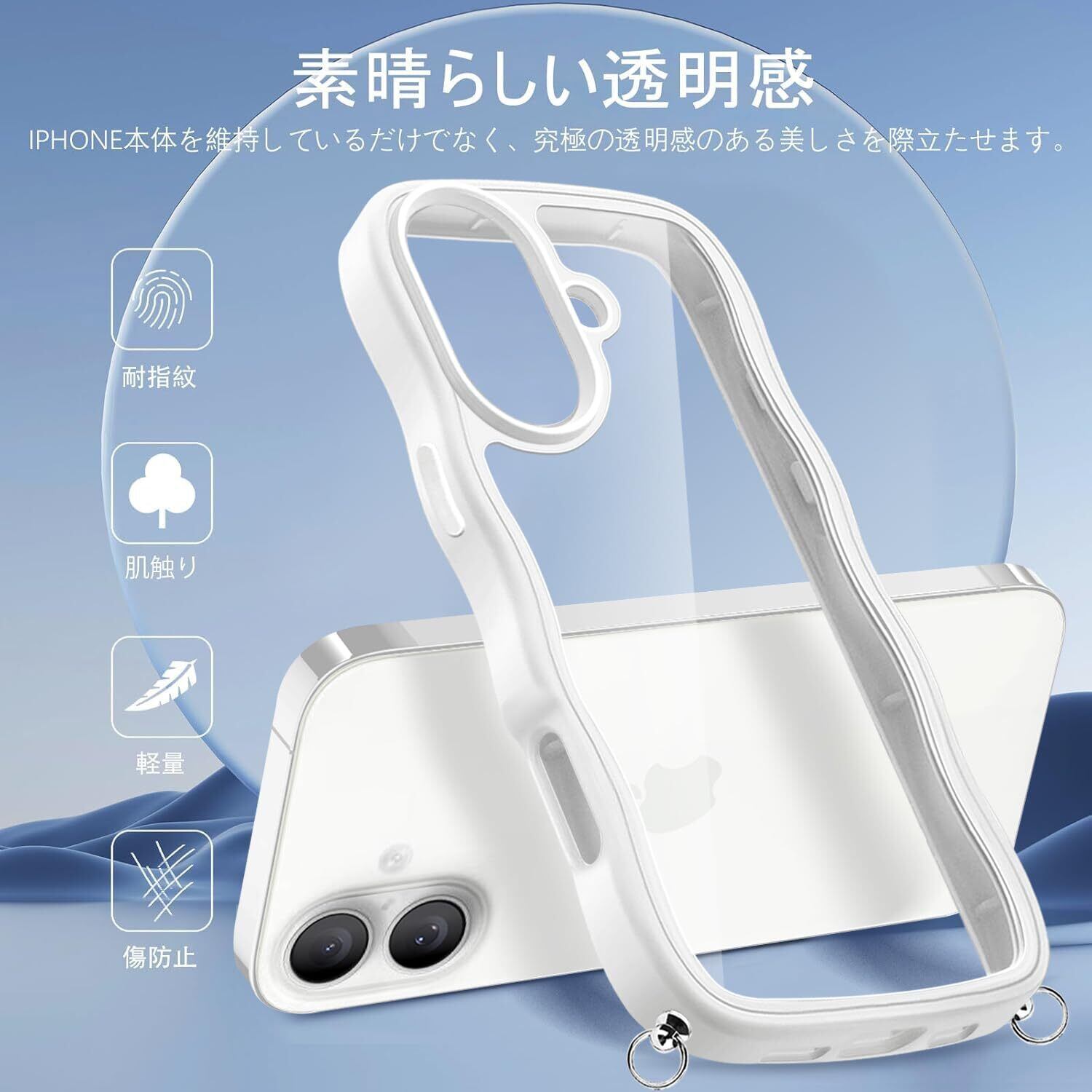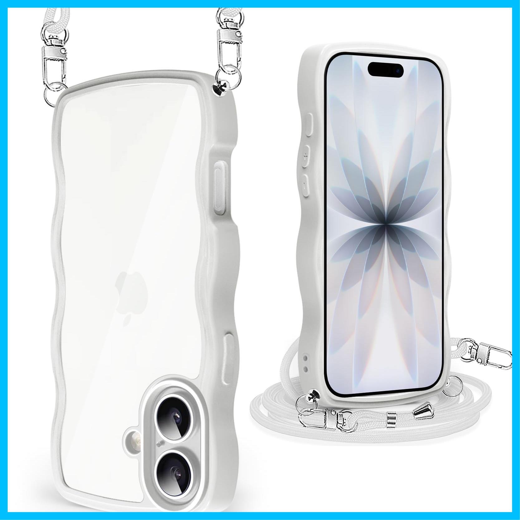 iPhone 17 用 ケース クリア ショルダー アイフォン 17 用 カバー うねうね 透明 人気 かわいい 耐衝撃 スマホケース ストラップ付き 取り外し可能 長さ調整可能 首かけ 肩掛け 薄型 軽量 TPU ワイヤレス充電対応(ホワイト) | Lulu