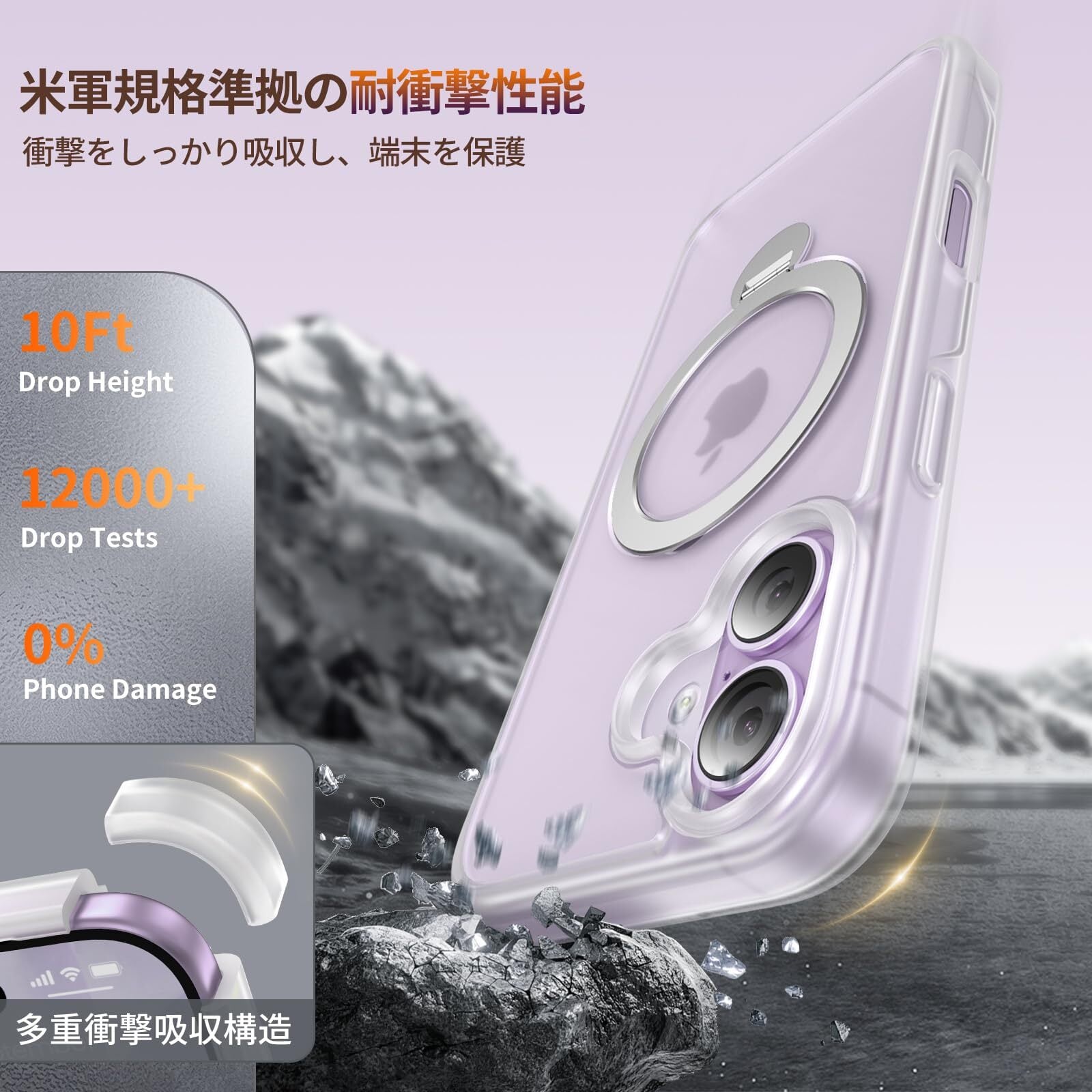 iPhone 17 用 ケース MagSafe対応 360°回転スタンド&隠し収納式 縦横両対応 半透明マット仕上げ 指紋防止 いphone17 スマホケース マグネット搭載 超強磁力 ワイヤレス充電対応 アイホン17 Fadkzyxr カバー 米軍規格 耐衝撃 カメラ保護 おしゃれ・半透明 | Lulu