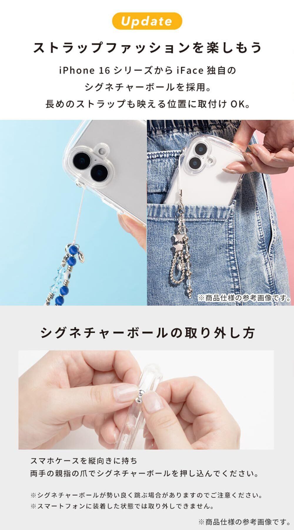 クリアな背面に、シールや写真を入れてカスタマイズが可能 / 手にしっかりフィットする「くびれ」形状で持ちやすさ抜群 / 弾力のあるTPUで、端末をしっかり保護 / 画面とカメラを守る、フチ高設計 / 背面のドット加工で密着痕を防ぎ、見た目を美しく保つ / ケースを装着したまま、サイドボタンやカメラ機能の操作がスムーズに行えます / 選べる2カ所のストラップホール / iFaceストラップホルダー専用設計でショルダーストラップの使いやすさアップ ※ストラップホルダーを併用する場合は、iFaceから発売している製品をご使用ください。類似品ではiFaceケースと併用の使用感をしかねるため、ご注意ください。 / iFaceスマホリング、iFace画面保護シートとの併用も可能 ※iFaceスマホリングと併用する際には一日ほど置くとしっかり貼り付きます。