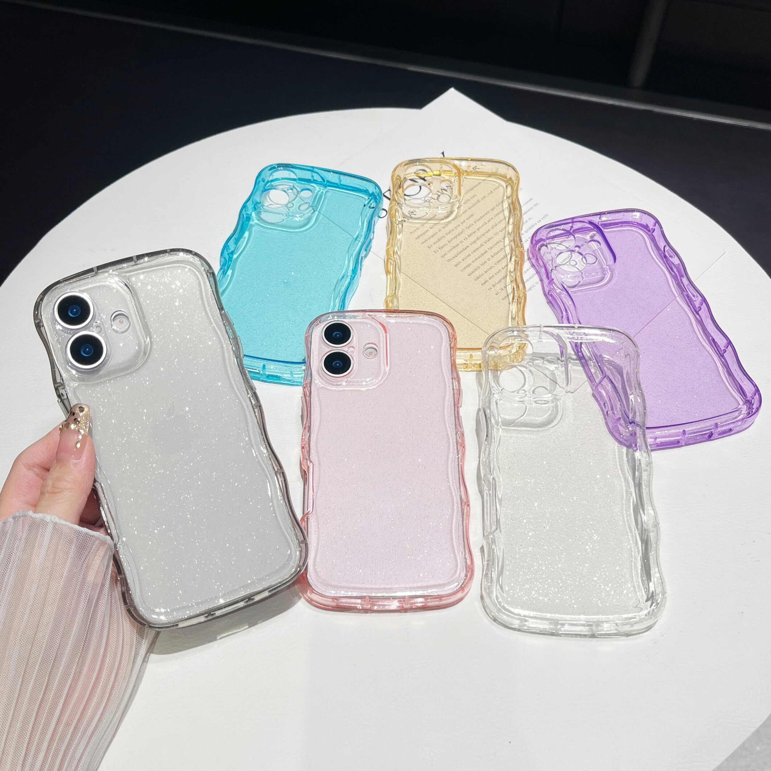 ZTOFERA for iPhone 17 ケース,女性女の子男性用クリアグリッターカーリーウェーブフレーム,iPhone 17用かわいいスマホケース,ブラック