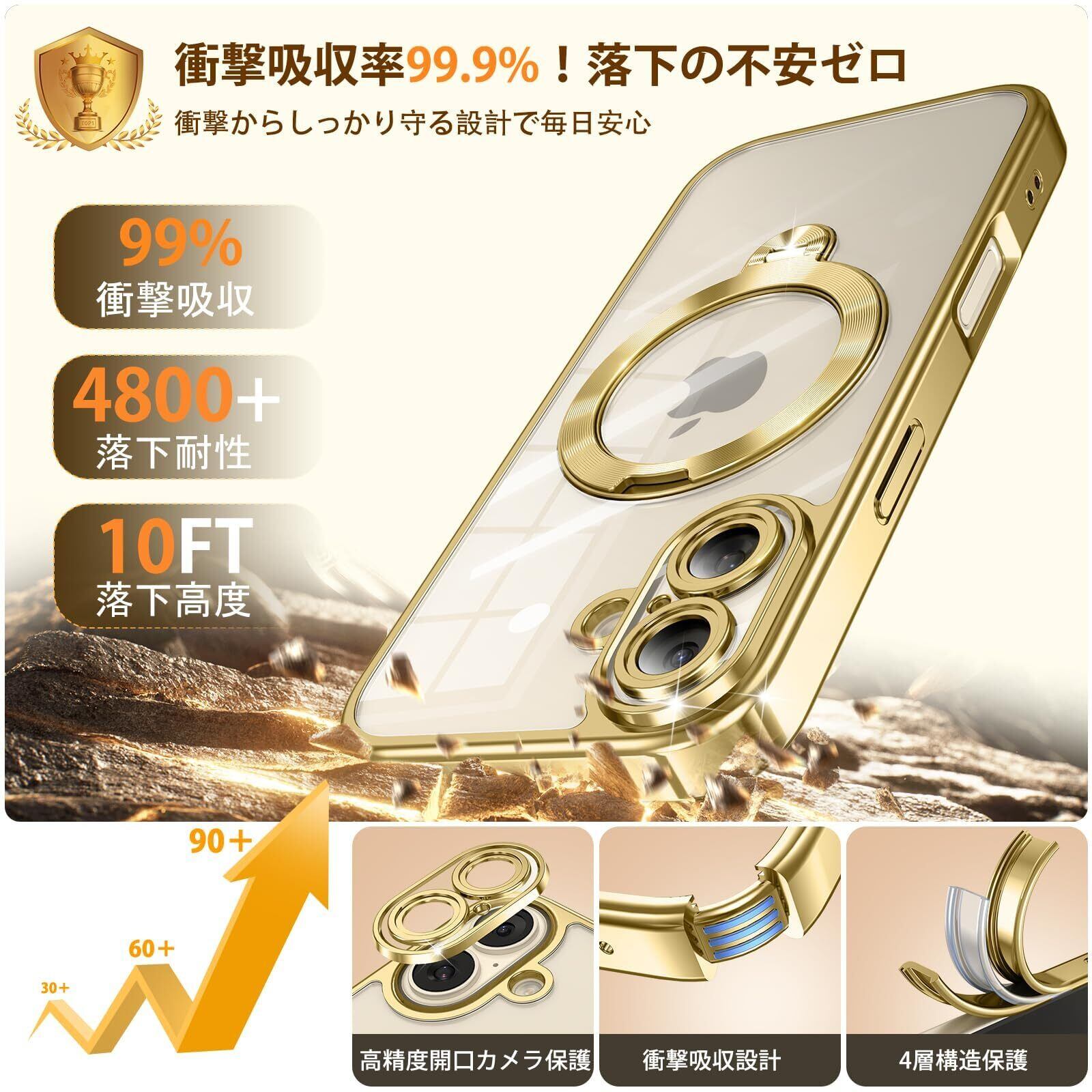 iPhone 17 用 ケース MagSafe対応 光沢CD紋様リング 360°定点回転スタンド 縦横両対応 マグセーフ対応 メッキバンパー キラキラ 背面クリア 精密開口レンズ保護 いphone 17 ケース Gunwon スマホケース 米軍規格 耐衝撃 黄変防止 マグネット付け 超強磁力 ワイヤレス充電 ストラップホール付き アイフォン17用 携帯ケース「ゴールド」 | Lulu