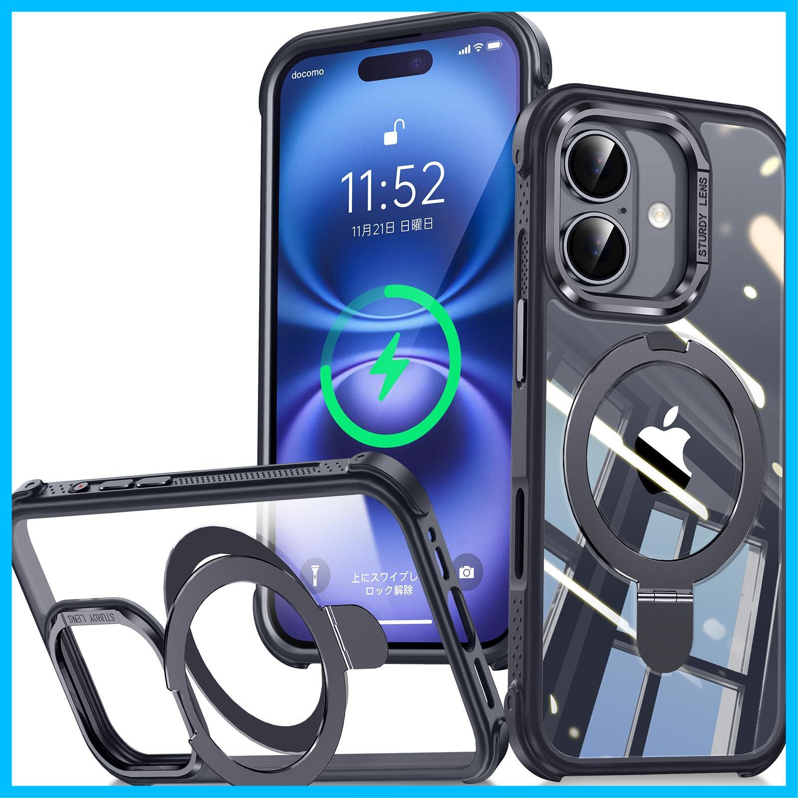 【米軍MIL規格&隠れスタンド】Bluoocase iPhone 17 用 ケース MagSafe対応 横縦両立・角度自由調整 クリア 黄変防止/指紋防止/滑り止めエッジ いphone17 ケース 耐衝撃 高耐久性 レンズ保護 ワイヤレス充電対応 透明 おしゃれ アイフォン17 カバー 6.3インチ(ブラック) | Lulu