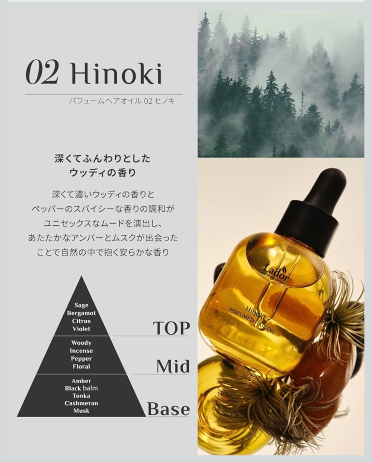 LADOR(ラドール) パフュームヘアオイル ヒノキ 30ml 韓国コスメ 洗い流さないトリートメント ヘアケア ダメージケア ヘアエッセンス つや髪 香水