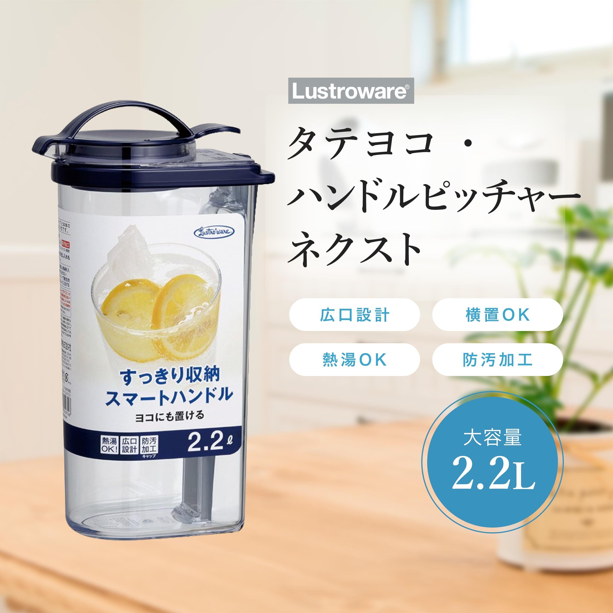 岩崎工業 ラストロウェア タテヨコ・ハンドル ピッチャー 2.2L ネクスト 麦茶ポット麦茶ボトル 冷水ポット お茶ボット水出しコーヒー 冷茶 ボトル ジャグ 熱湯可 横置き 耐熱 広口 ネイビー K-1297 NB | Lulu