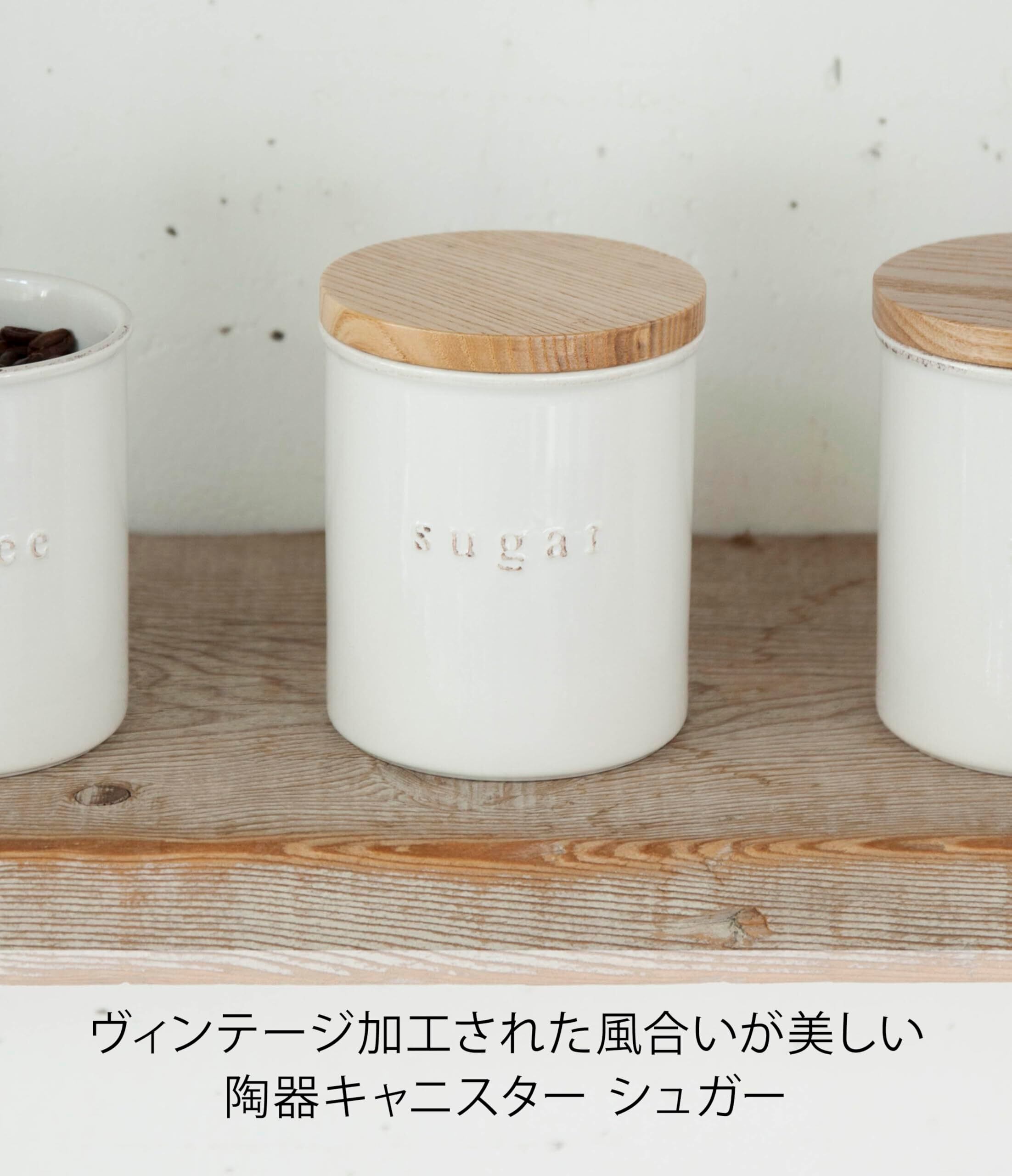 ヴィンテージ加工された風合いが美しい陶器キャニスター