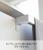 取り付けフックを扉の厚みにぴったりと調節して固定するので、ガタつきが無く、しっかりと取り付けられます。