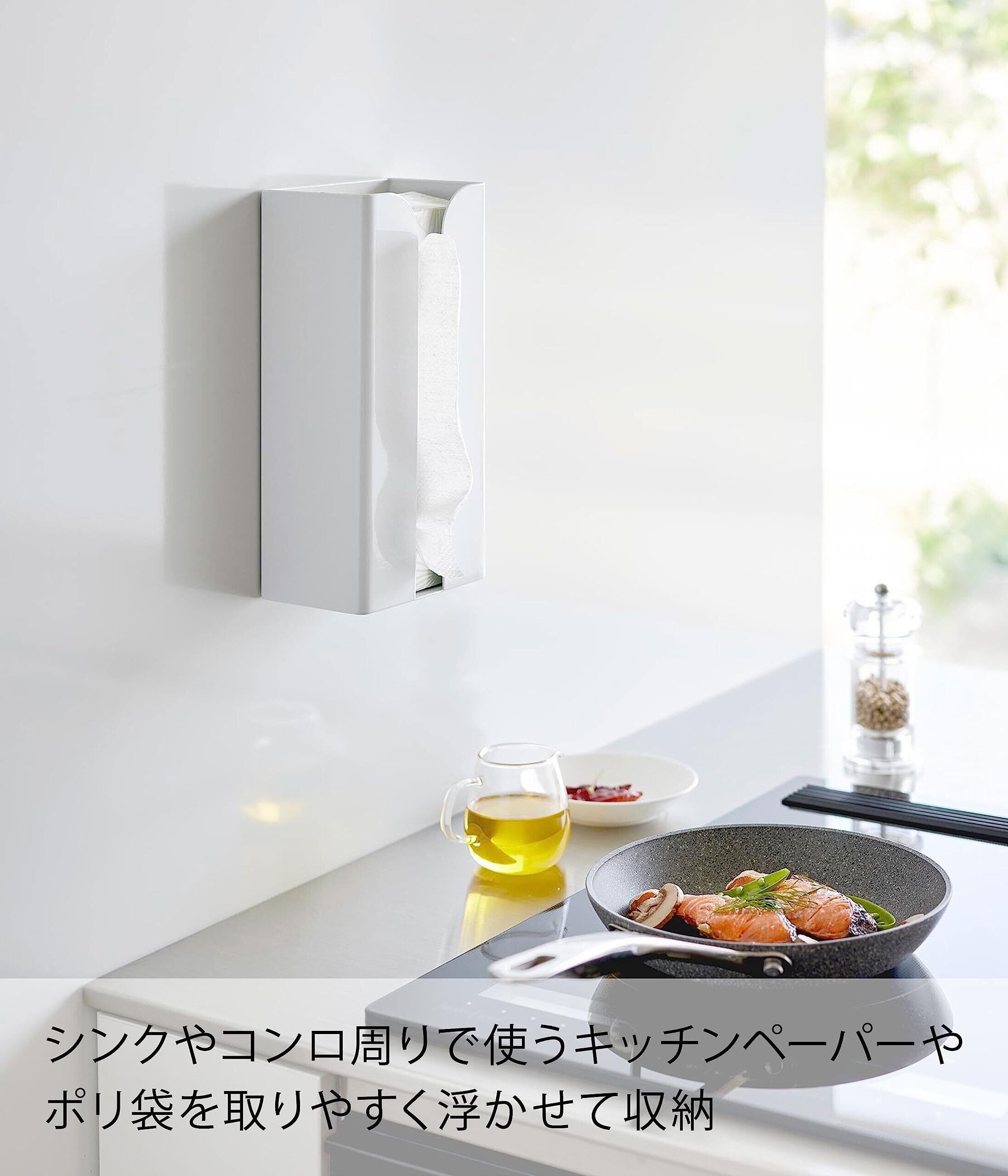山崎実業(Yamazaki) マグネット ポリ袋 & キッチンペーパーホルダー ホワイト 約W13×D8.3×H26cm タワー tower ティッシュケース ポリ袋ホルダー 簡単取付 3773 | Lulu