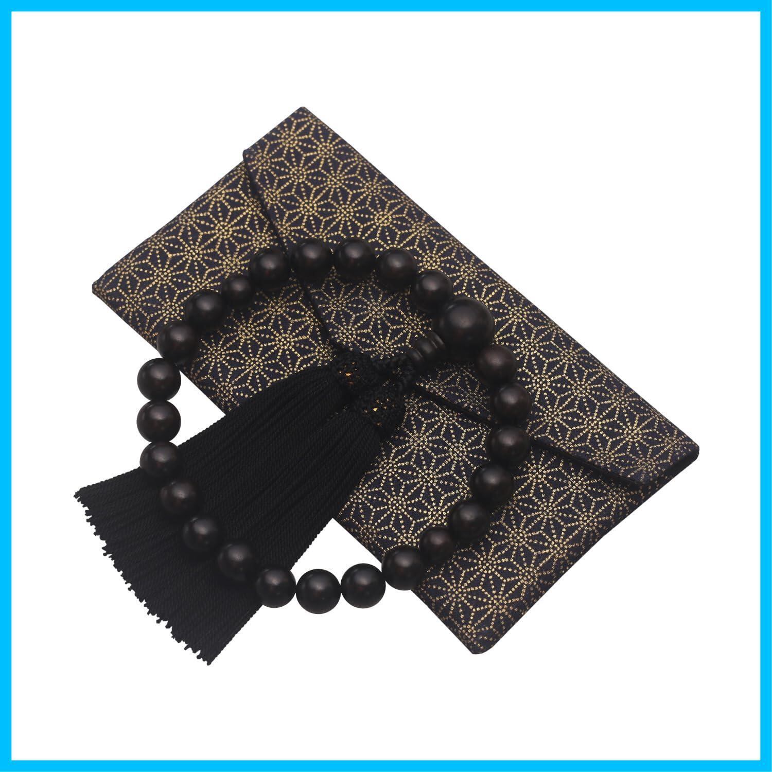 通雲念珠屋 数珠 男性用 縞黒檀 念珠 葬式 葬儀 お通夜 略式 数珠袋付き 全ての宗派でお使い頂けます… (ブラック)