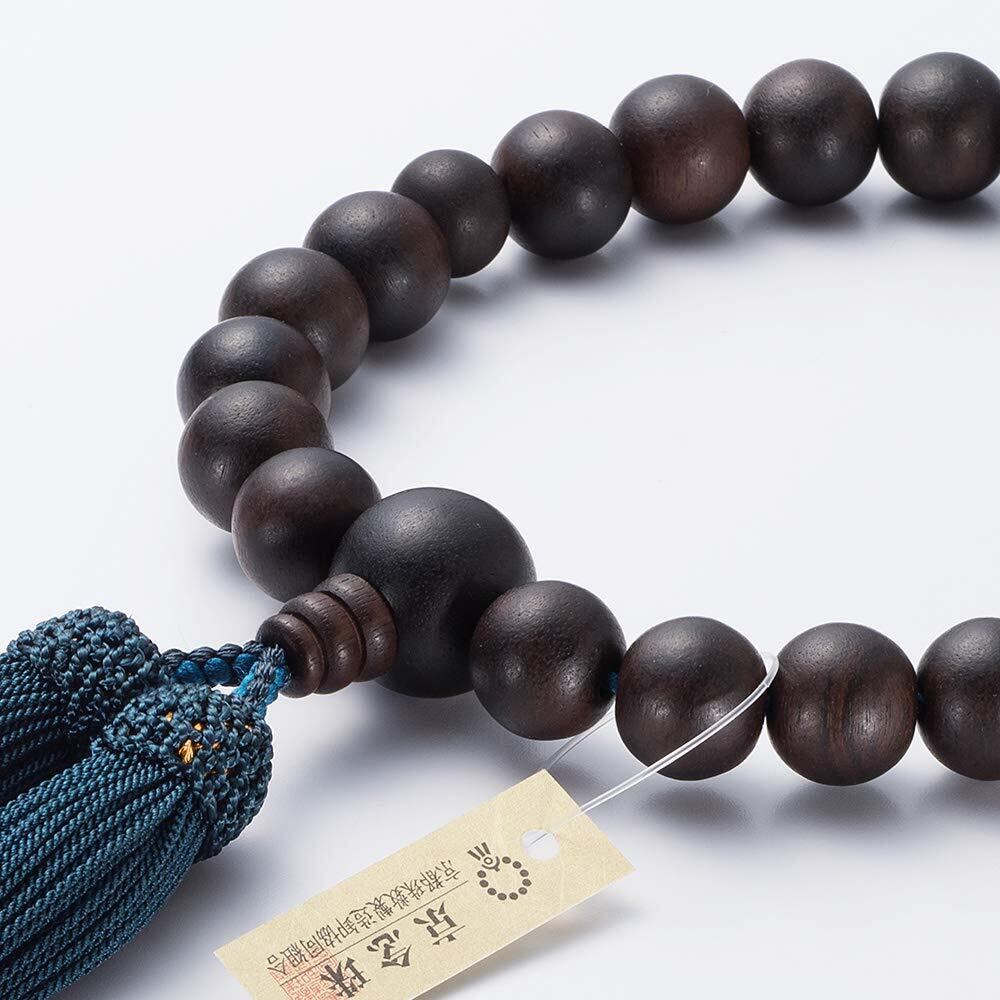 [仏壇屋 滝田商店] 数珠 男性用 縞黒檀 (艶消) 22玉 数珠袋付き (房色 鉄紺色) すべての宗派で使える 京念珠 証明書付