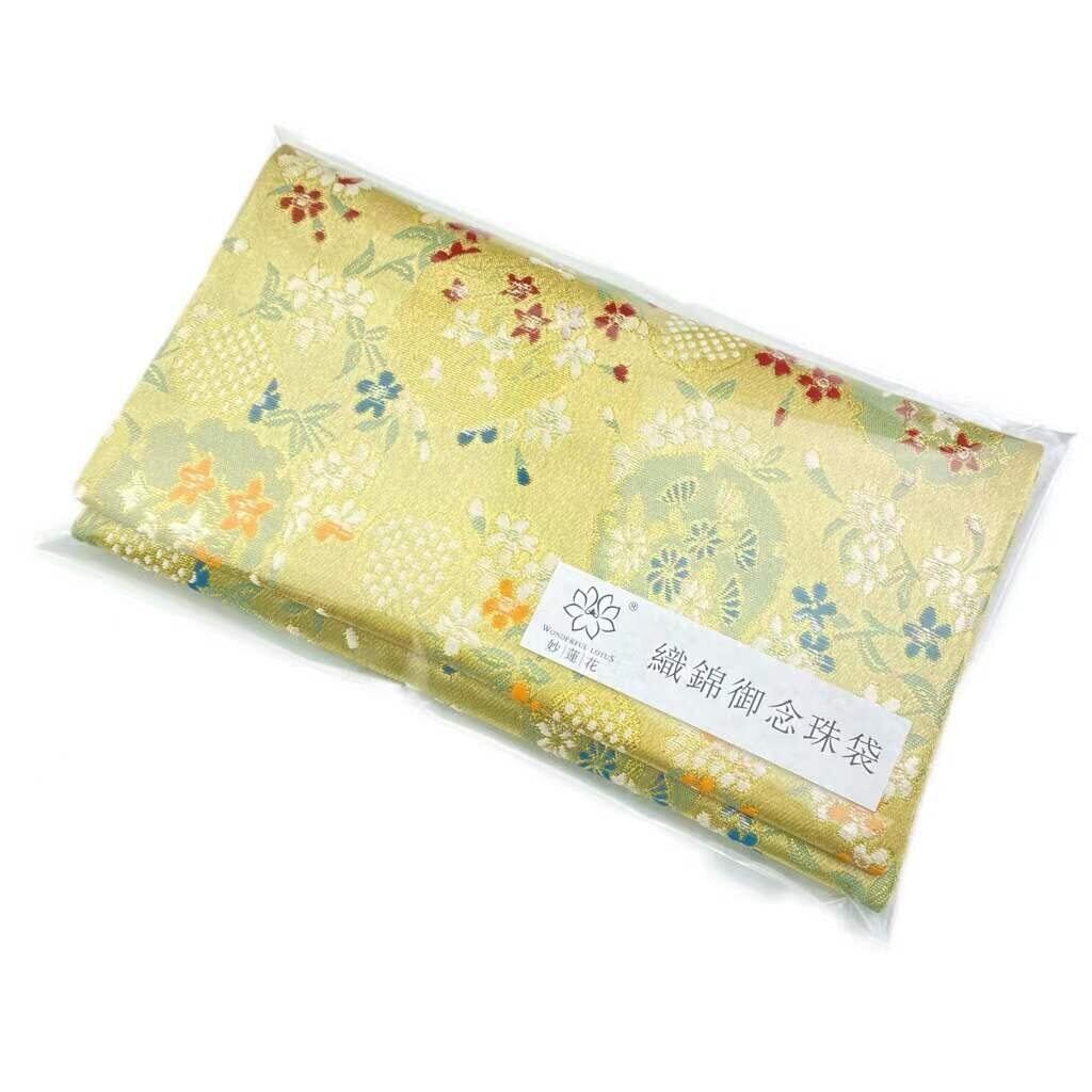 妙蓮花 数珠袋 (念珠入れ) レーヨン 織錦製 鉄紺色 金茶色 大サイズ (縦11cm×横19.5cm) 携帯に便利な数珠ケース・数珠入れ・念珠袋・念珠ケース すべての宗派 葬式 法事 法要 (金茶色) | Lulu