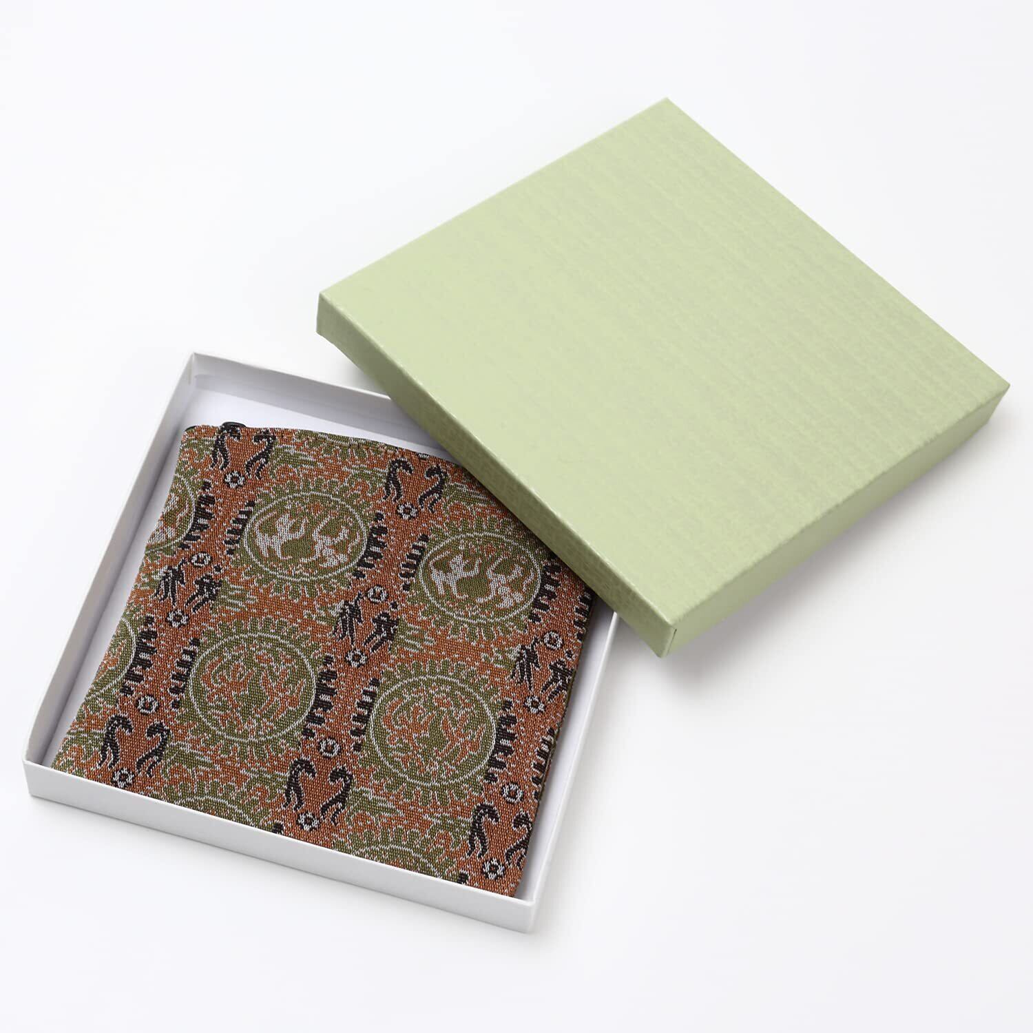 正倉院 男性用 数珠袋 念珠入れ チャック付 ポーチ ケース 13×13cm 外箱付 日本製/茶 ブラウン