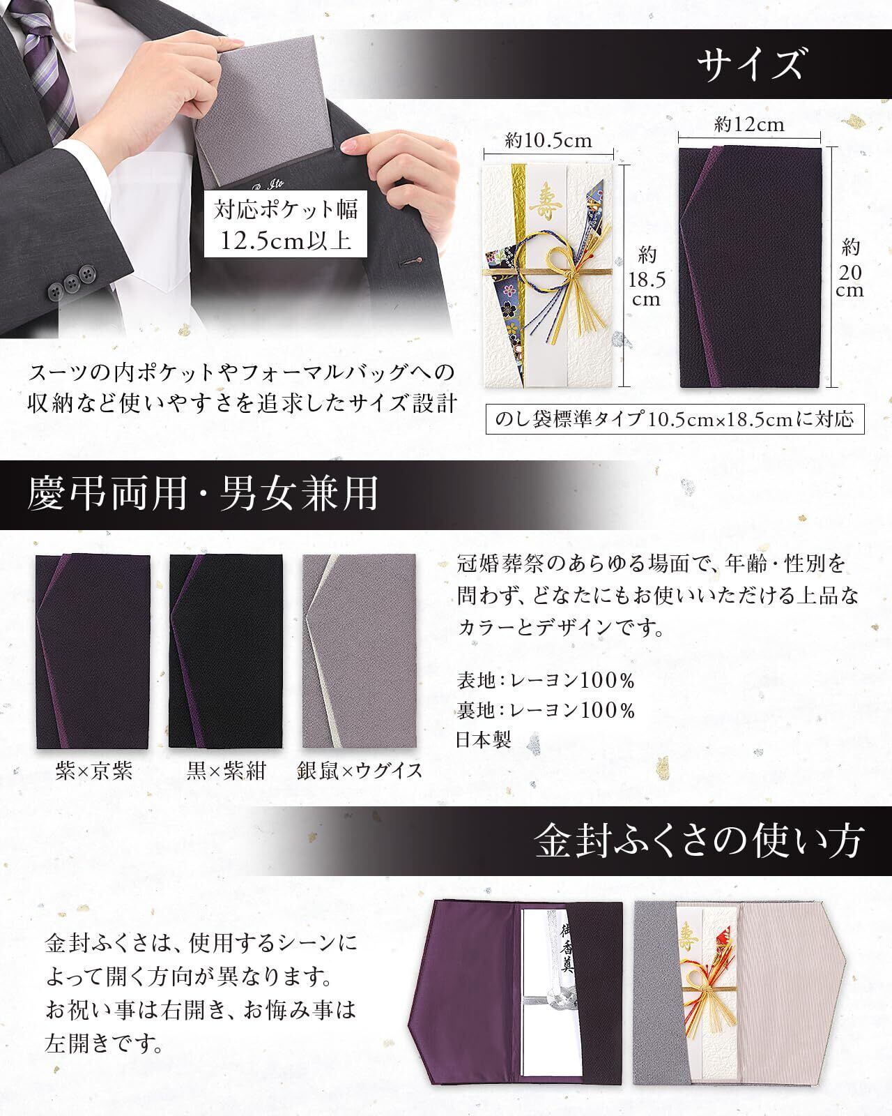 「ふくさ(紫×京紫)(黒×紫紺)」と「不祝儀袋」のセットです。