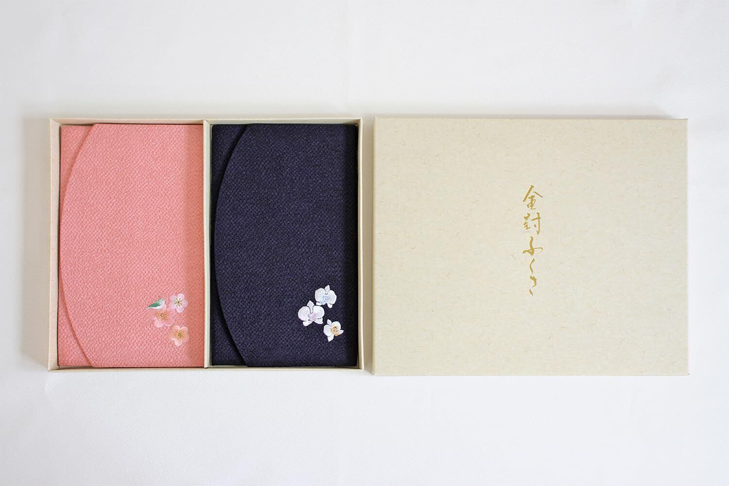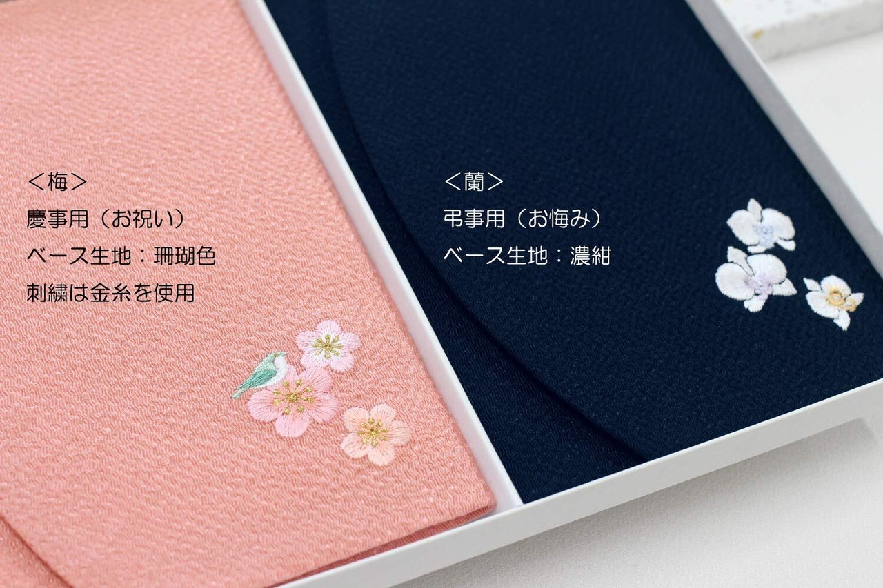 慶弔セット(梅→お祝い、蘭→お悔み) 生地色:梅→珊瑚色 蘭→濃紺