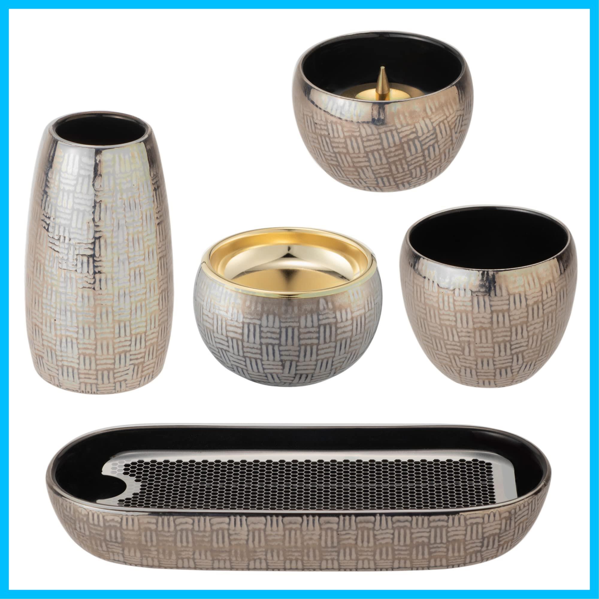 サンメニー 和 モダン 仏具 5点セット 本格 有田焼 日本製 インテリアに馴染む おしゃれ お花 ろうそく 線香 お茶 ご飯 現代仏壇 お仏壇 仏具小物 篭 市松模様 シルバー フラワースタンド キャンドルスタンド インセンスホルダー タンブラー コンパクト 小さい 小物 有田焼(陶器) 仏具セット 花立 灯立 香炉 茶湯器 仏器 [Sunmany] | Lulu