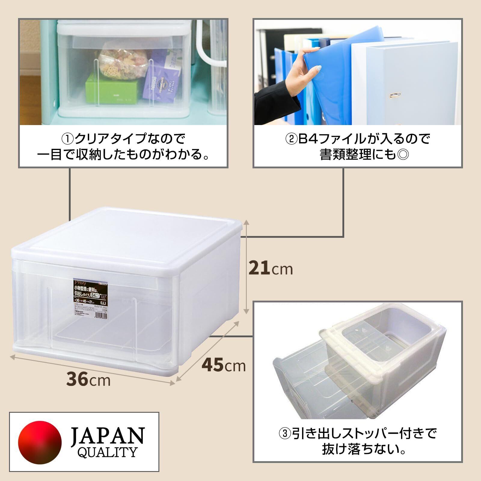 天馬(Tenma) 中身が見えるシンプルな小物収納ケース 日本製 プレクシーケース 積み重ねて使用できる収納ボックス 引き出し クリアケース 【色 クリアナチュラル】 【サイズ LL】 【幅36×奥行45×高さ21cm】 | Lulu
