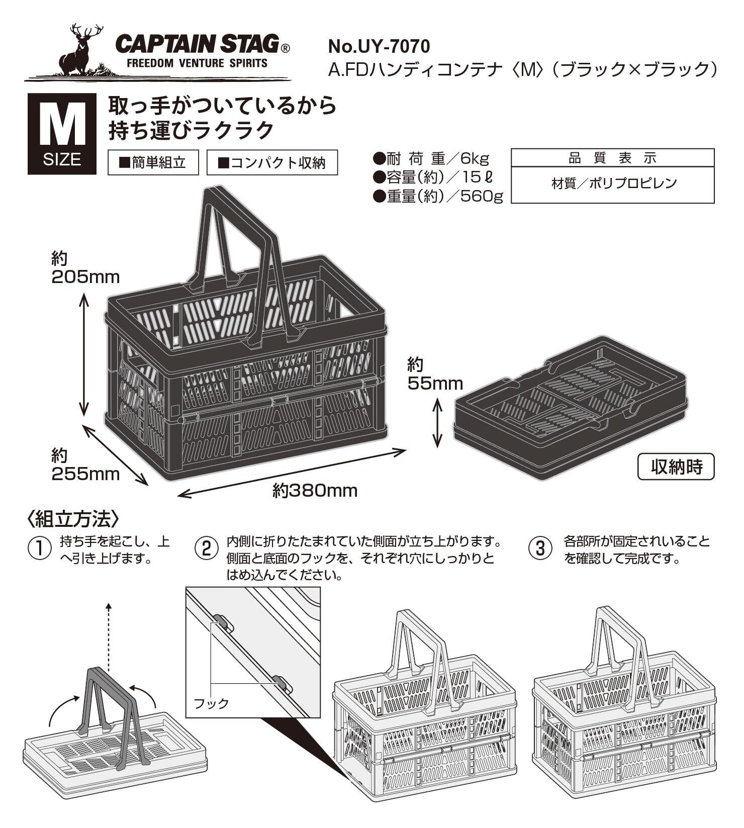 【限定】 キャプテンスタッグ(CAPTAIN STAG) 折りたたみ コンテナ カゴ フォールディング ハンディ コンテナ 取っ手付き 【S/M/Lサイズ】 【容量7L/15L/26L】 【ブラック/カーキ/オリーブ】