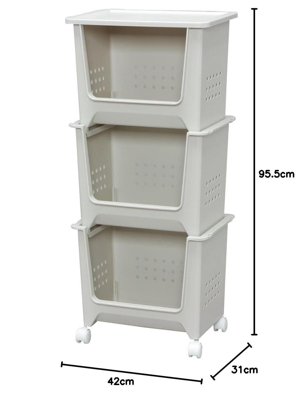 サイズ(約) 3段スタック時(キャスター取付):幅42.0×奥行31.0×高さ95.5cm バスケット内寸:幅35.0×奥行24.0×高さ29.5cm フタ取付時バスケットサイズ:幅42.0×奥行31.0×高さ31.5cm