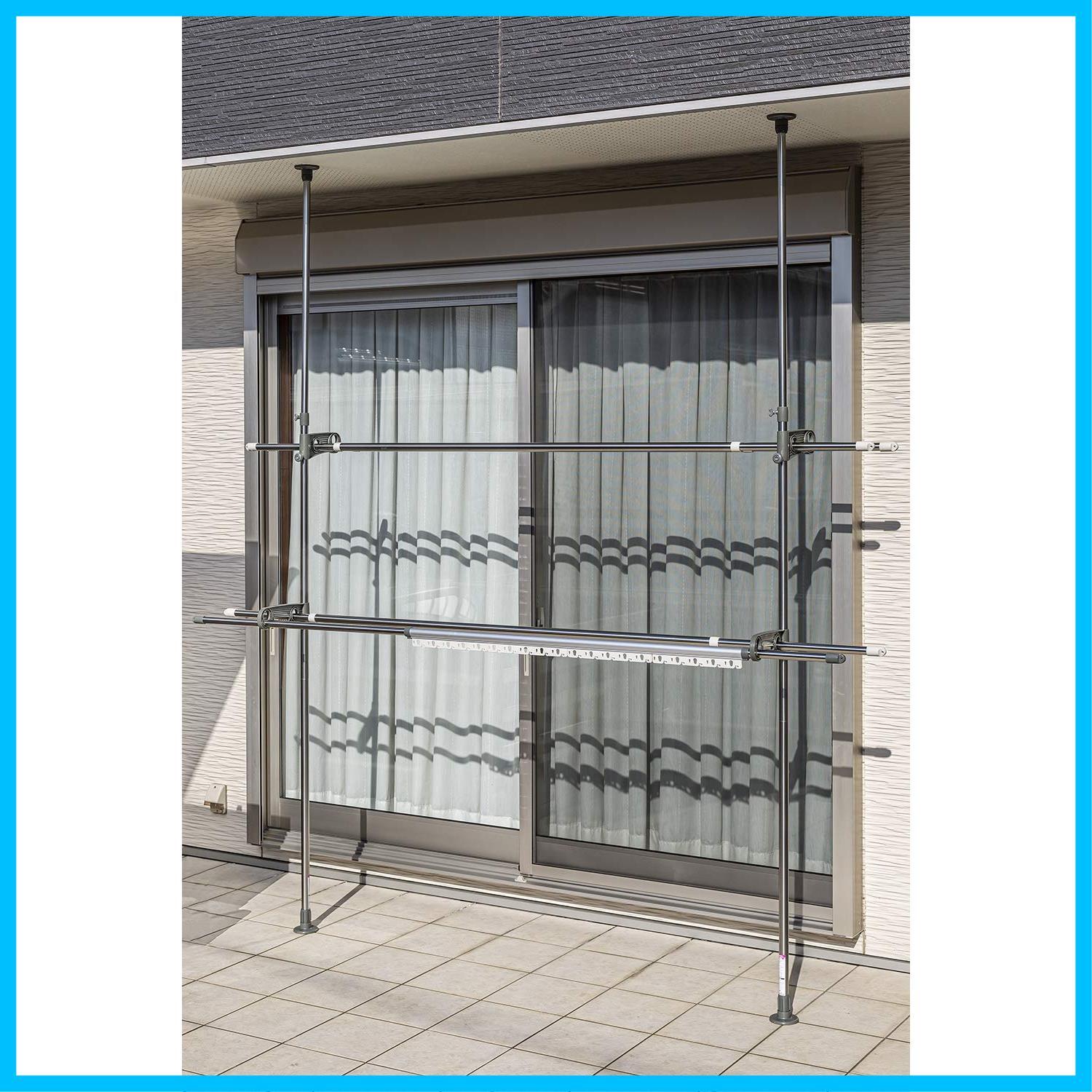 サビにくいステンレス製つっぱり式スタンドポール! ○ベランダ用つっぱり式2段ものほし竿受け(専用竿掛け S/L 各1セット付き)○マンションのベランダでの洗濯物干しにも最適○サビに強いステンレス製○ネジ・クギ不要で簡単取り付け
