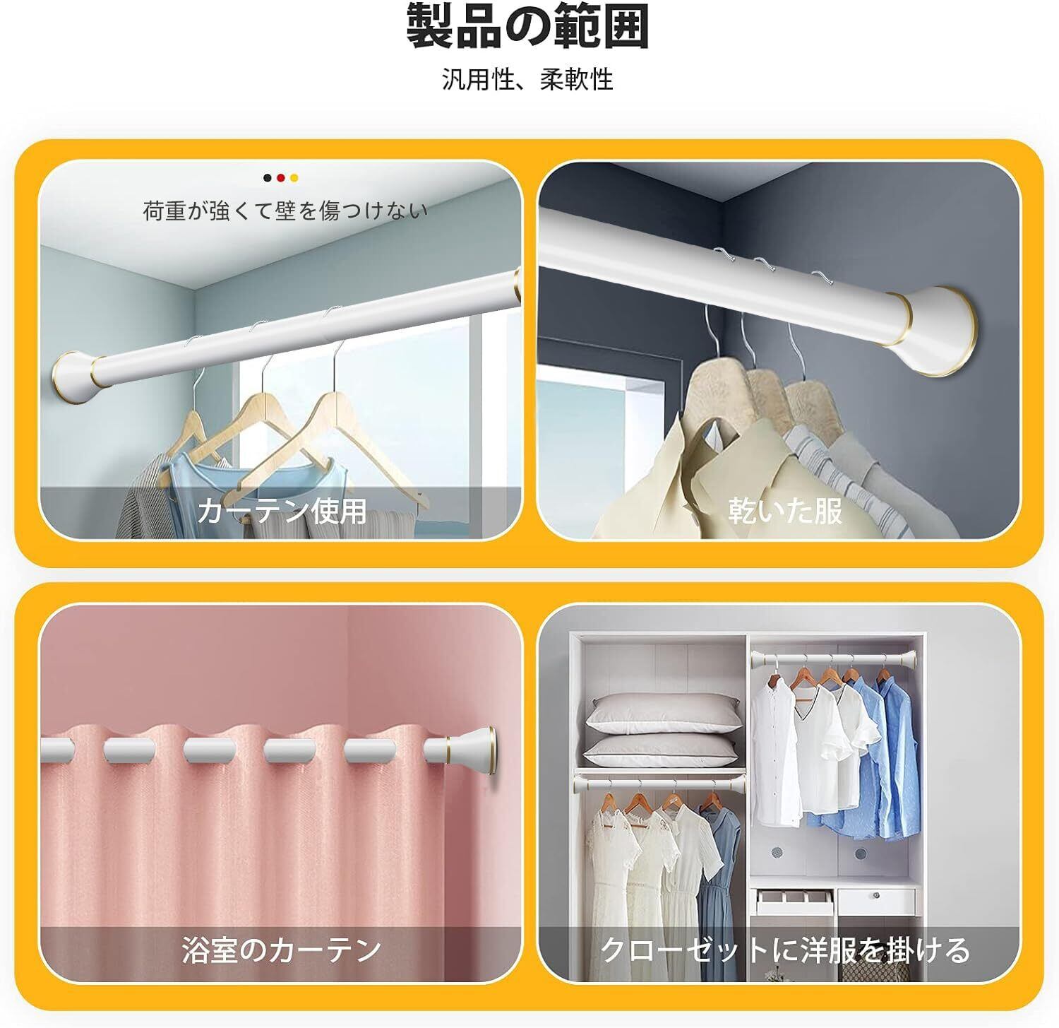【簡単な取付け・取出し】つっぱり棒は、ネジやクギを使わずに突っ張るだけで取り付けできるので、壁を傷つけることがありません。 高品質のスプリングロッドとして、簡単に回転することができ、組み立てる必要がなく、取り付けることができます。設置が簡単で手間が省ける。 賃貸住宅にぴったり!使用できまつっぱり棒、カーテンを吊るす棒として使用しています。 クローゼットロッド、室内カーテンロッド用、浴室タオル掛け用、風呂場シャワーカーテン用、部屋干し用、洗濯干し、キッチン用品収納