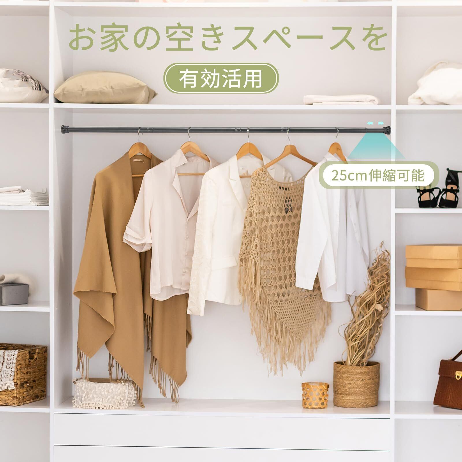 使用範囲が広く、クローゼット、洗面台、ドアと窓の壁面に突っ張り棒を支えて、キッチン用品収納、タオル、洋服、カーテン用などです。