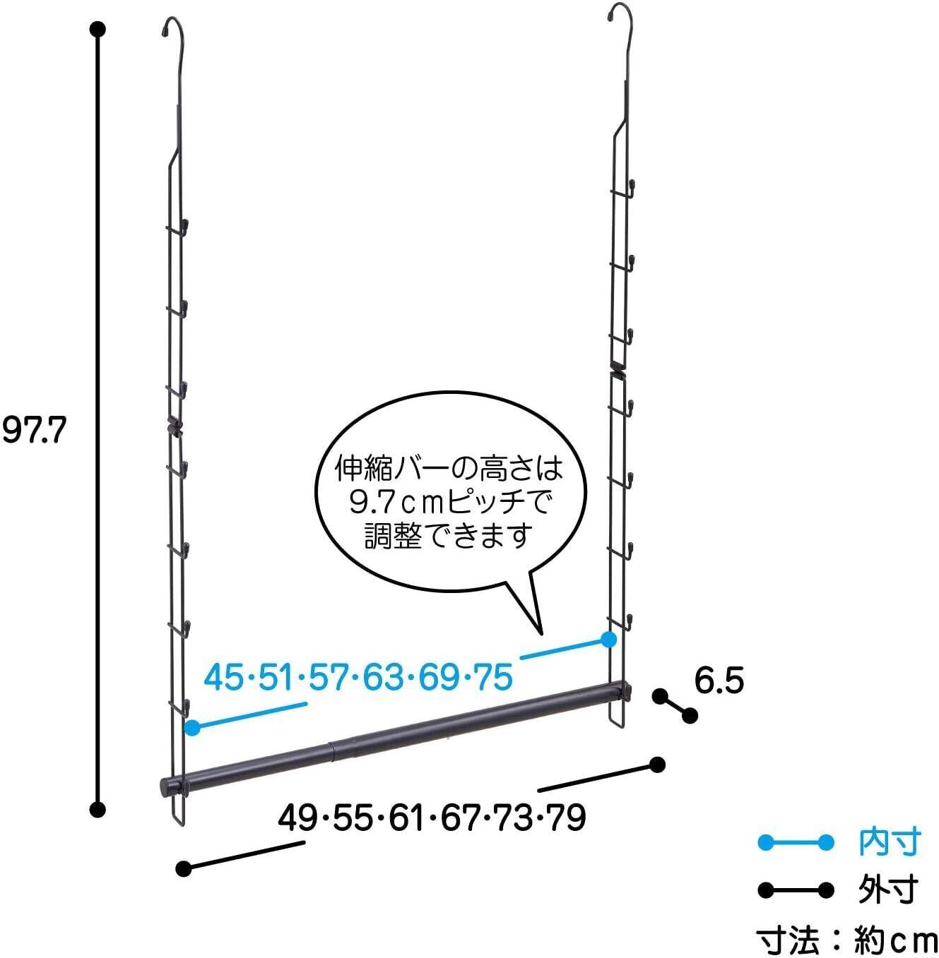 ベルカ(Belca) Belca 衣類収納 クローゼット吊り下げハンガー 伸縮タイプ 幅49~79×奥行6.5×高さ97.7cm ブラック 収納力アップ ハンガー CH-EX